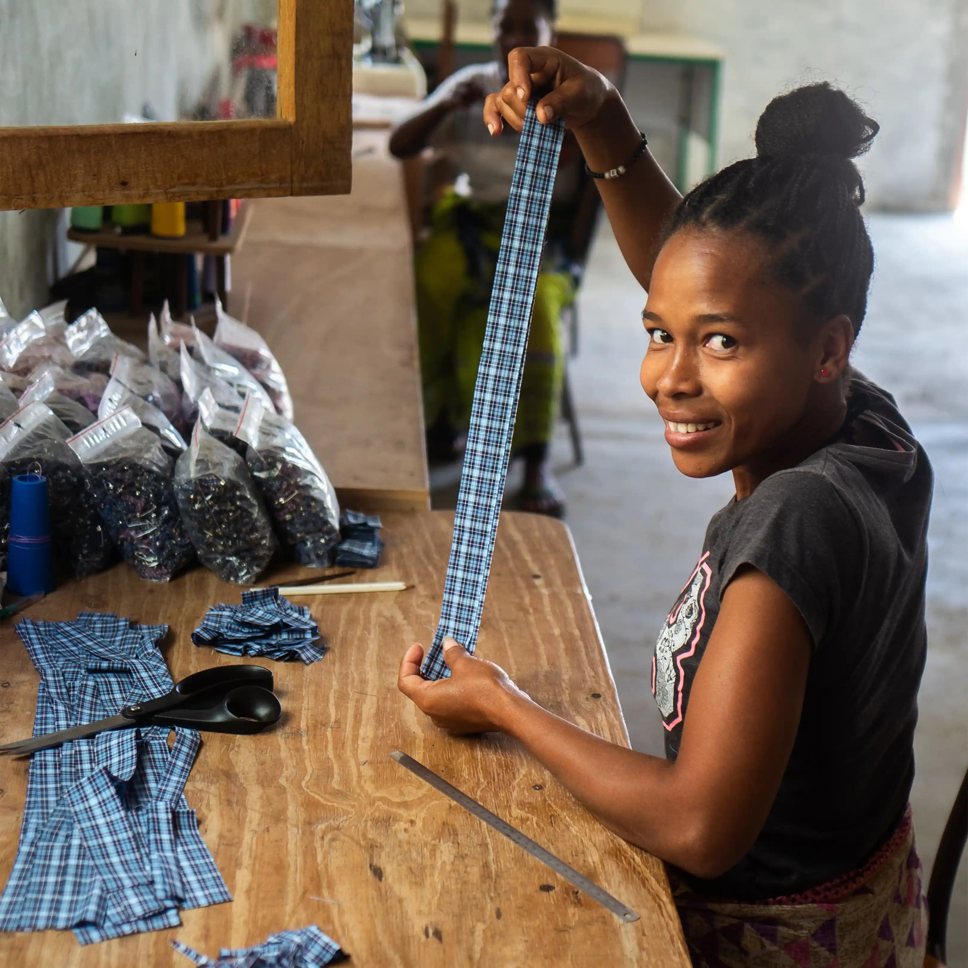 One brooch is sold for €3 in Eden Park stores or on our e-shop and helps finance meals for a child (€1 for lunches, €1 for the seamstresses, €1 for logistics and materials)