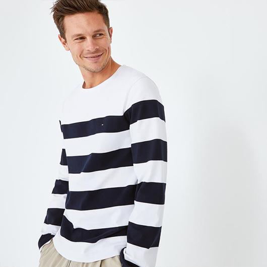 Déclinée en version t-shirt, sweatshirt ou pull, la marinière est le vêtement idéal pour apporter un peu de peps à une tenue d'inspiration casual chic, sans pour autant nuire à l'uniformité de son ensemble.