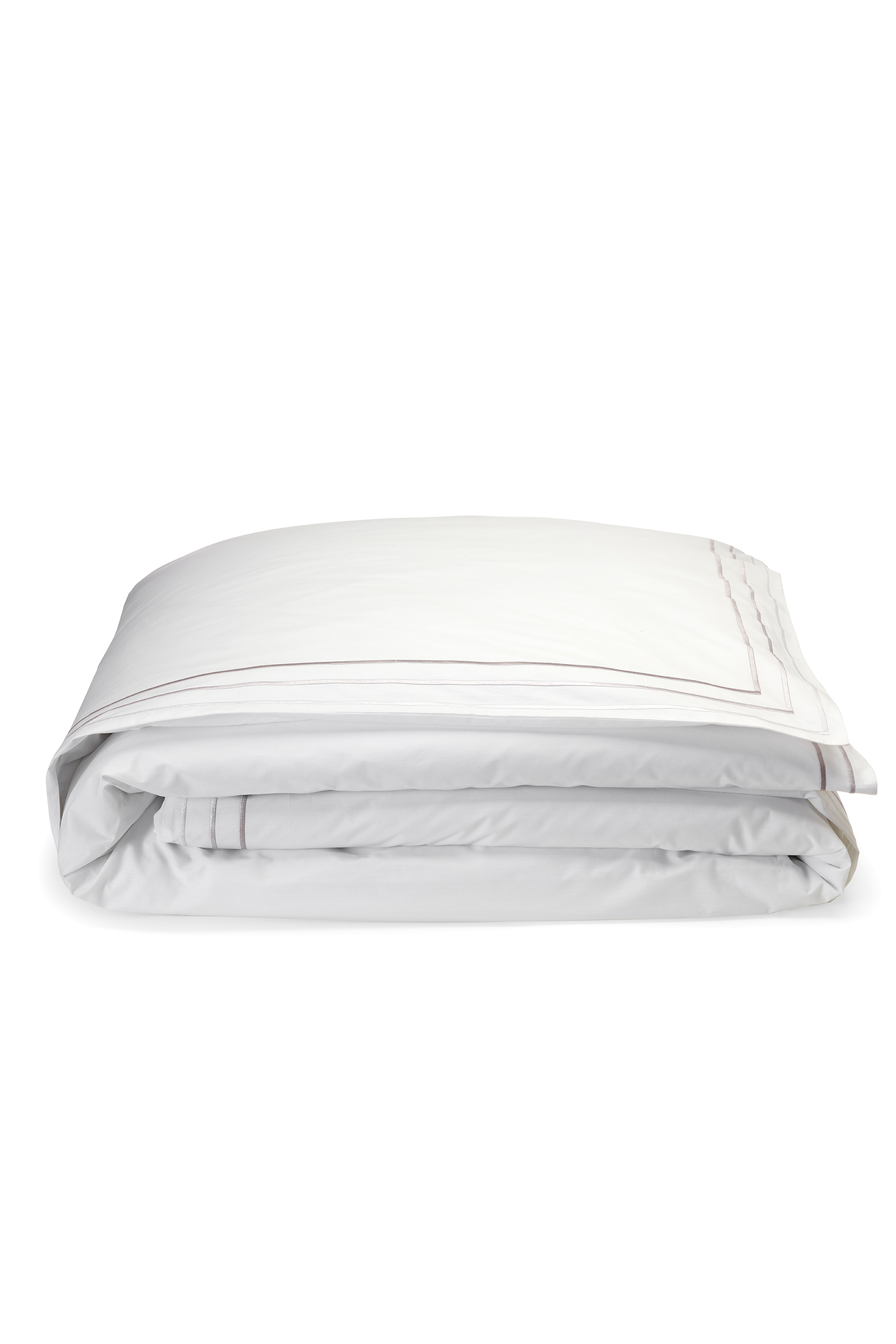 Opt for the softness, durability and luxurious feel of Egyptian cotton 200 threads/cm2 with this white comforter cover featuring a tri-color bourdon braid around the edge. Eden Park's signature tone-on-tone embroidery marks this range, which offers both delicacy and solidity, as well as unparalleled durability.