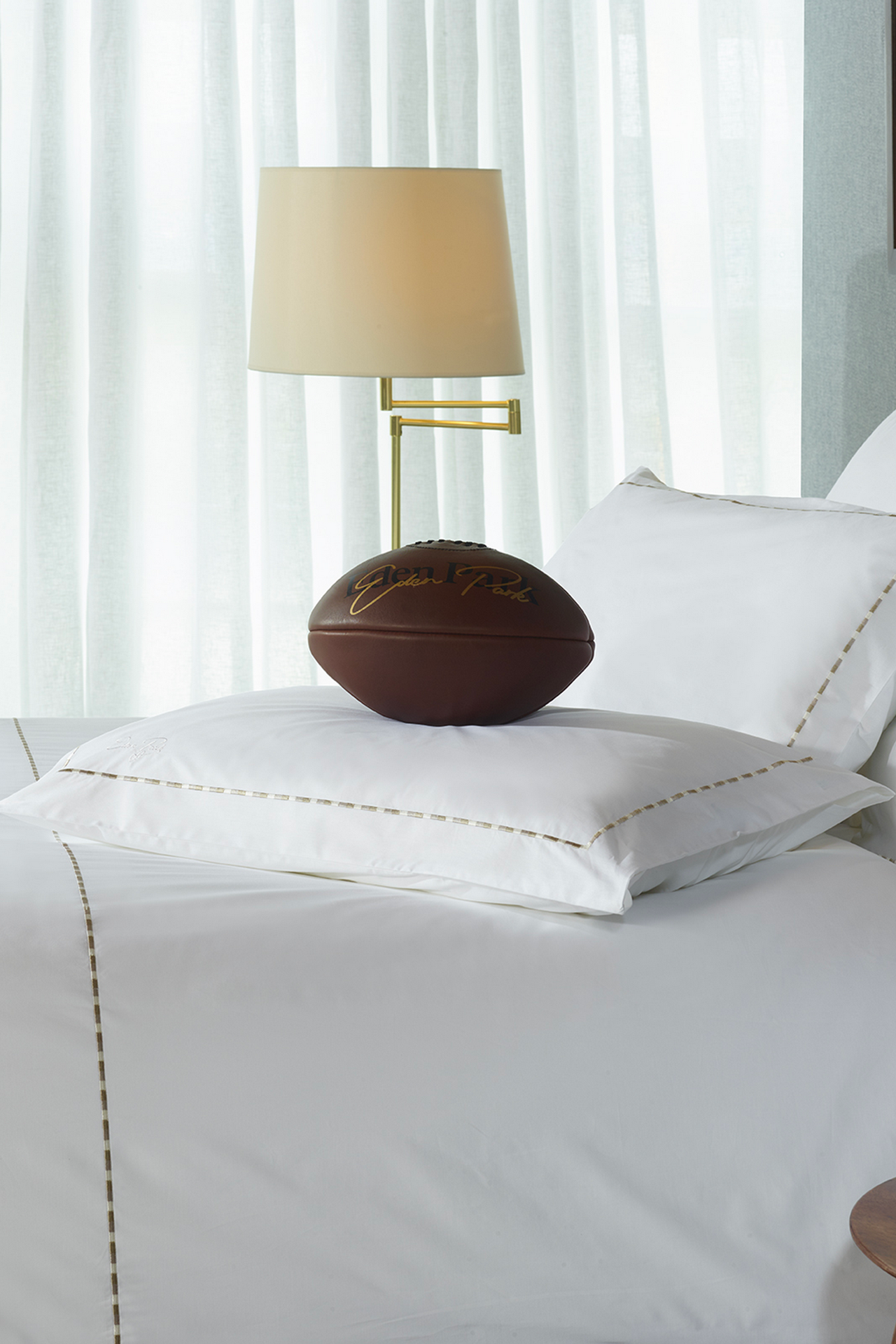 This set in cotton percale 200 threads/cm2 features a discreet bourdon-stitch detail evoking the rugby stripe so dear to Eden Park. The brand's name, signed by Franck Mesnel, adorns each piece in white mirror embroidery. Made from the finest cotton yarns, this percale will give you an incomparable feeling of freshness.