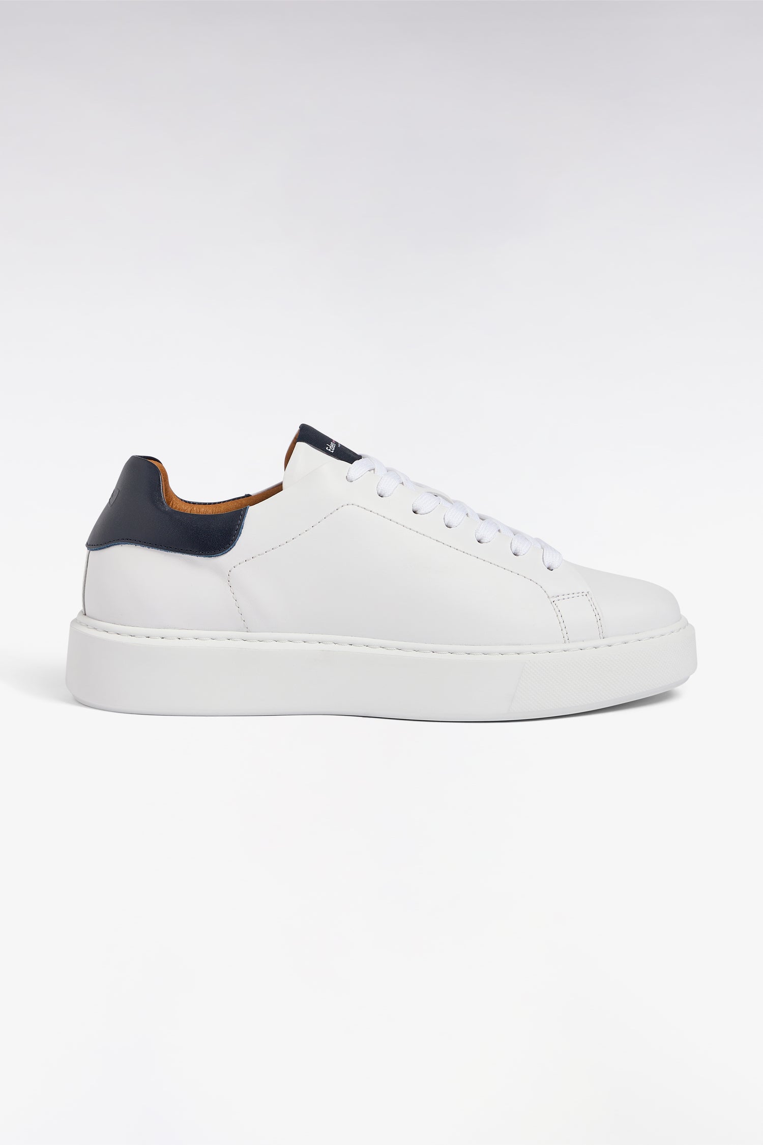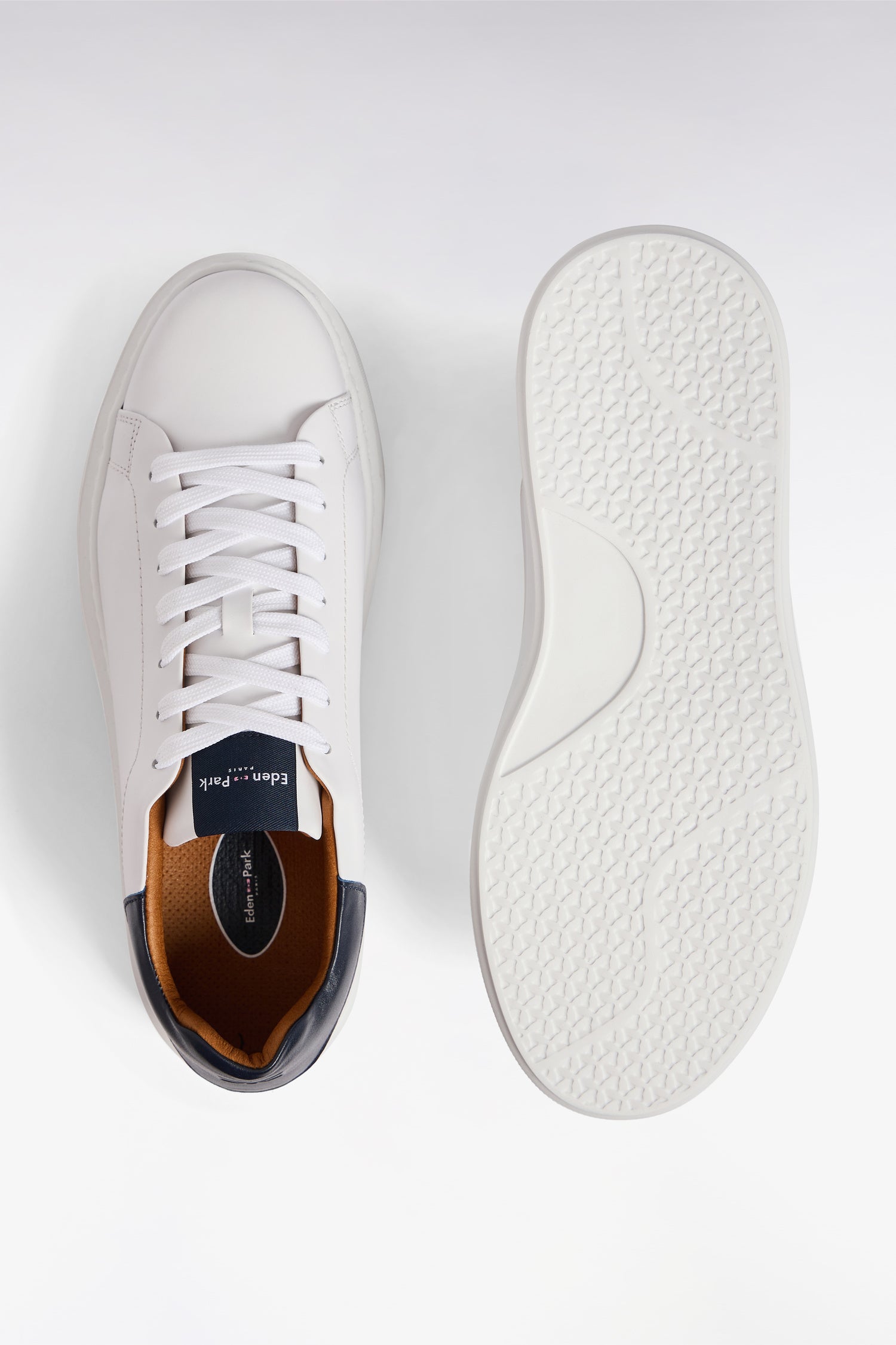 Crafted in white leather for a minimalist silhouette, these low-top sneakers go with every silhouette, from dressy to sporty outfits. Their tone-on-tone soles contrast with their signature navy tongue and bowtie-embossed back tab. Inside, a perforated camel sole ensures optimum comfort and breathability.