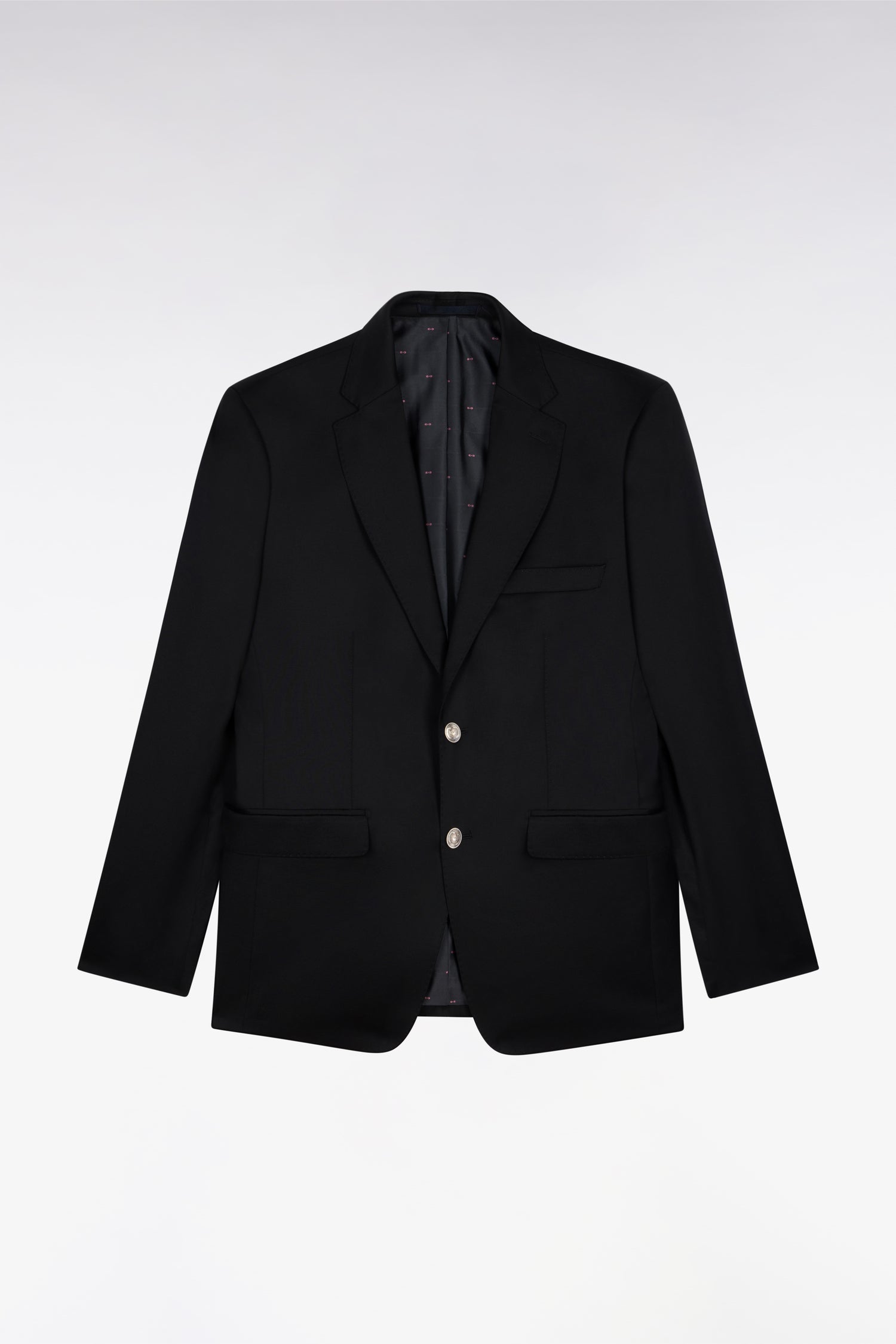 - 2 buttoned welt pockets and 1 inside ticket pocket
