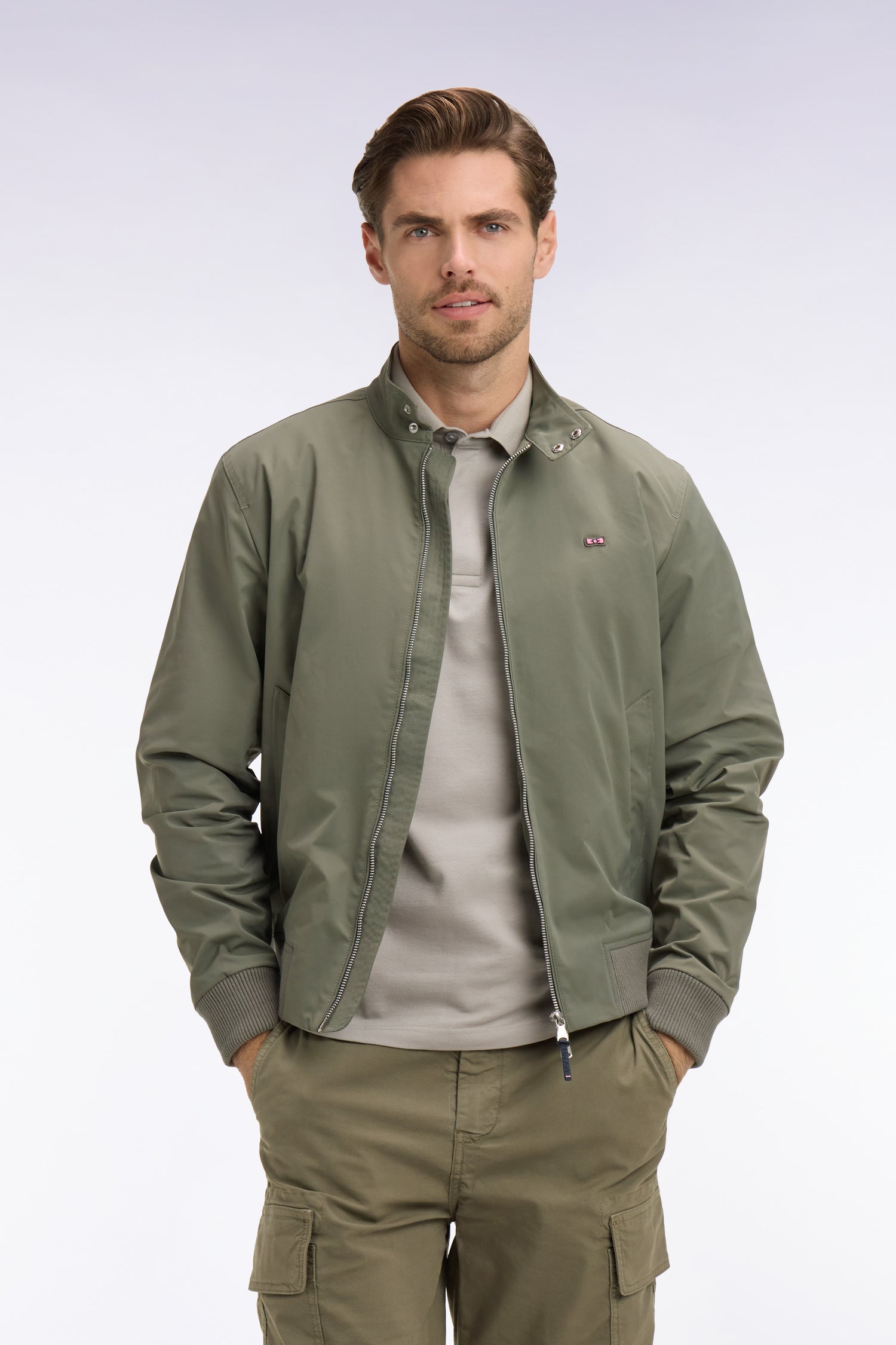 Ce blouson masculin en nylon, doublé de nylon à rayures rugby, allie confort et élégance. Ses bords-côtes aux poignets et à la taille, son col motard à boutons pression ainsi que le zip frontal structurent cette parfaite pièce de mi-saison. Deux poches extérieures et deux poches intérieures ajoutent à la praticité de ce blouson pour homme kaki.