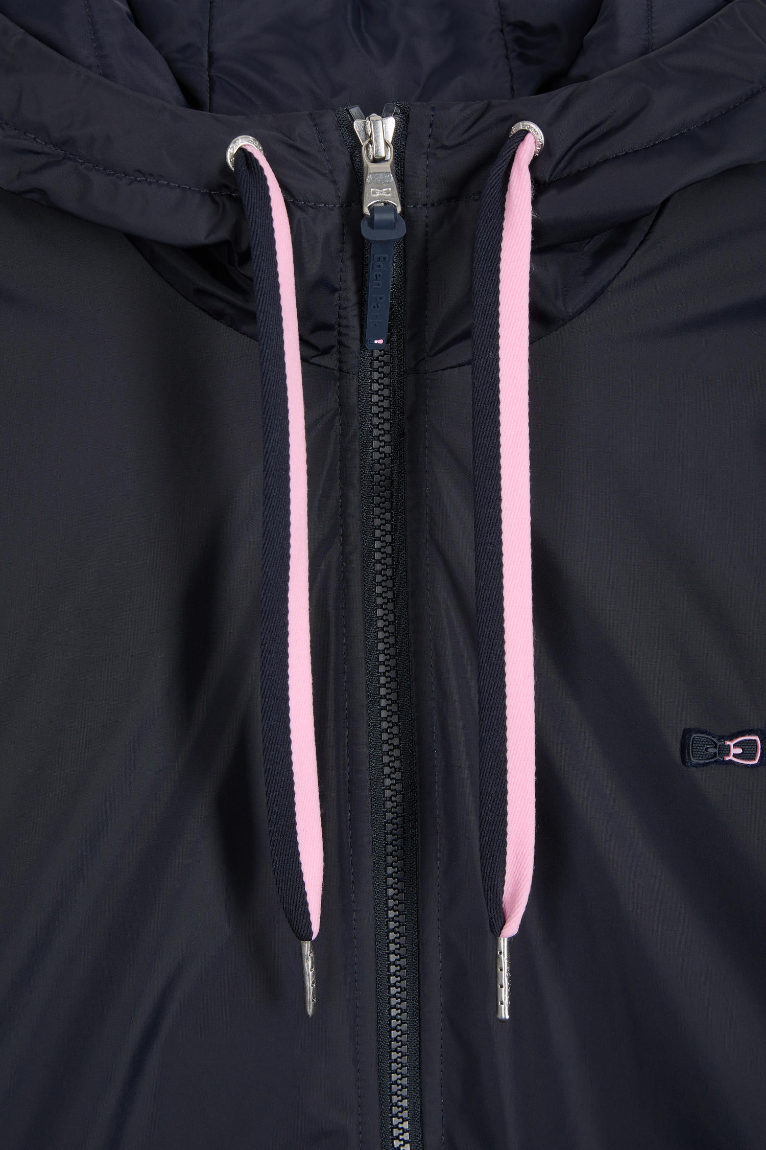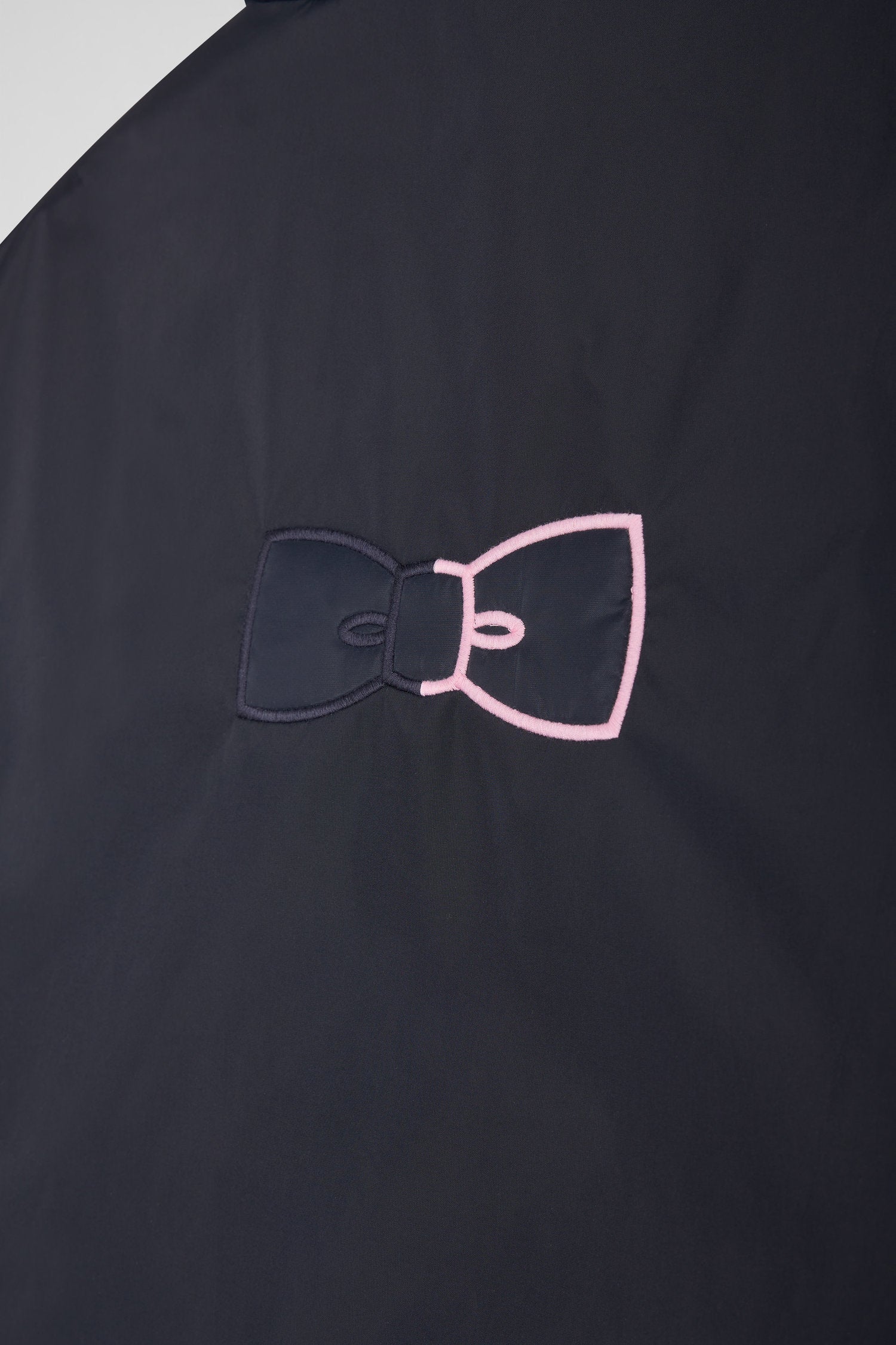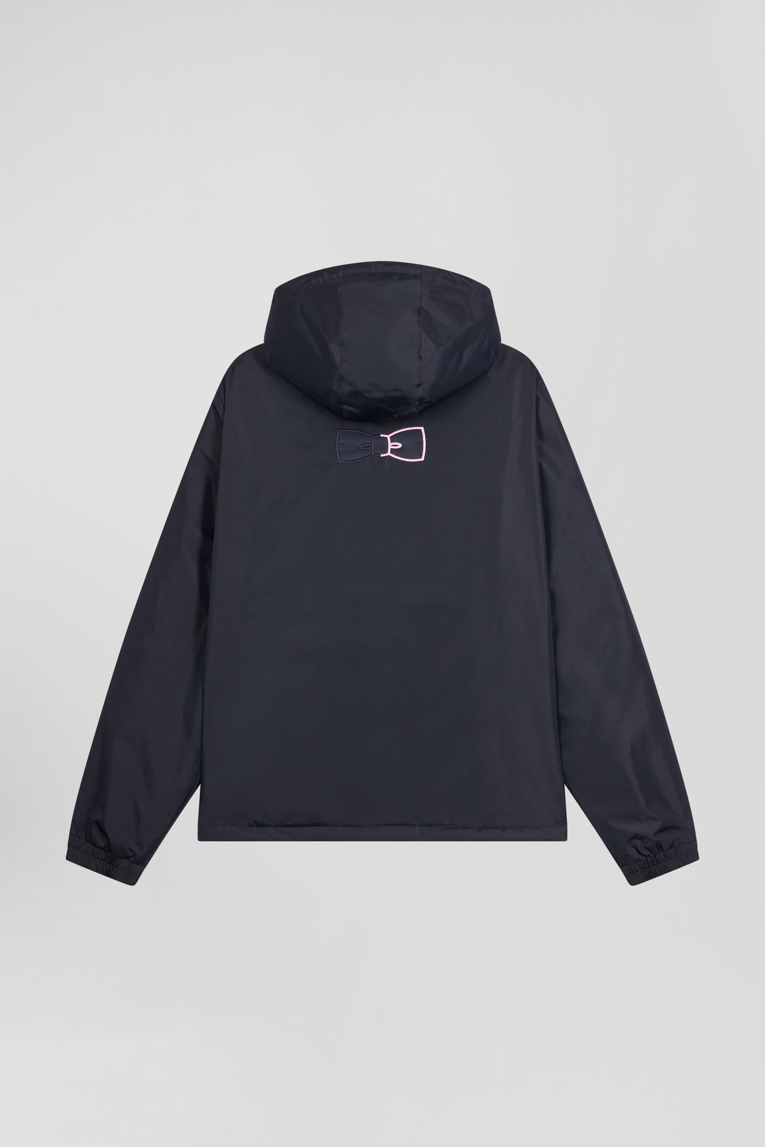 Take on the elements with this nylon windbreaker, featuring a hood with two-tone drawcord and branded end caps for a perfect fit. Inside, a quilted nylon lining provides warmth and comfort. Closure is assured by a two-way zip, and both exterior zipped pockets and interior scratch pockets promise security and convenience. The back is adorned with bowtie embroidery, while the soft felt chest badge is embroidered with our Maison's emblematic bow for an inimitable signature.