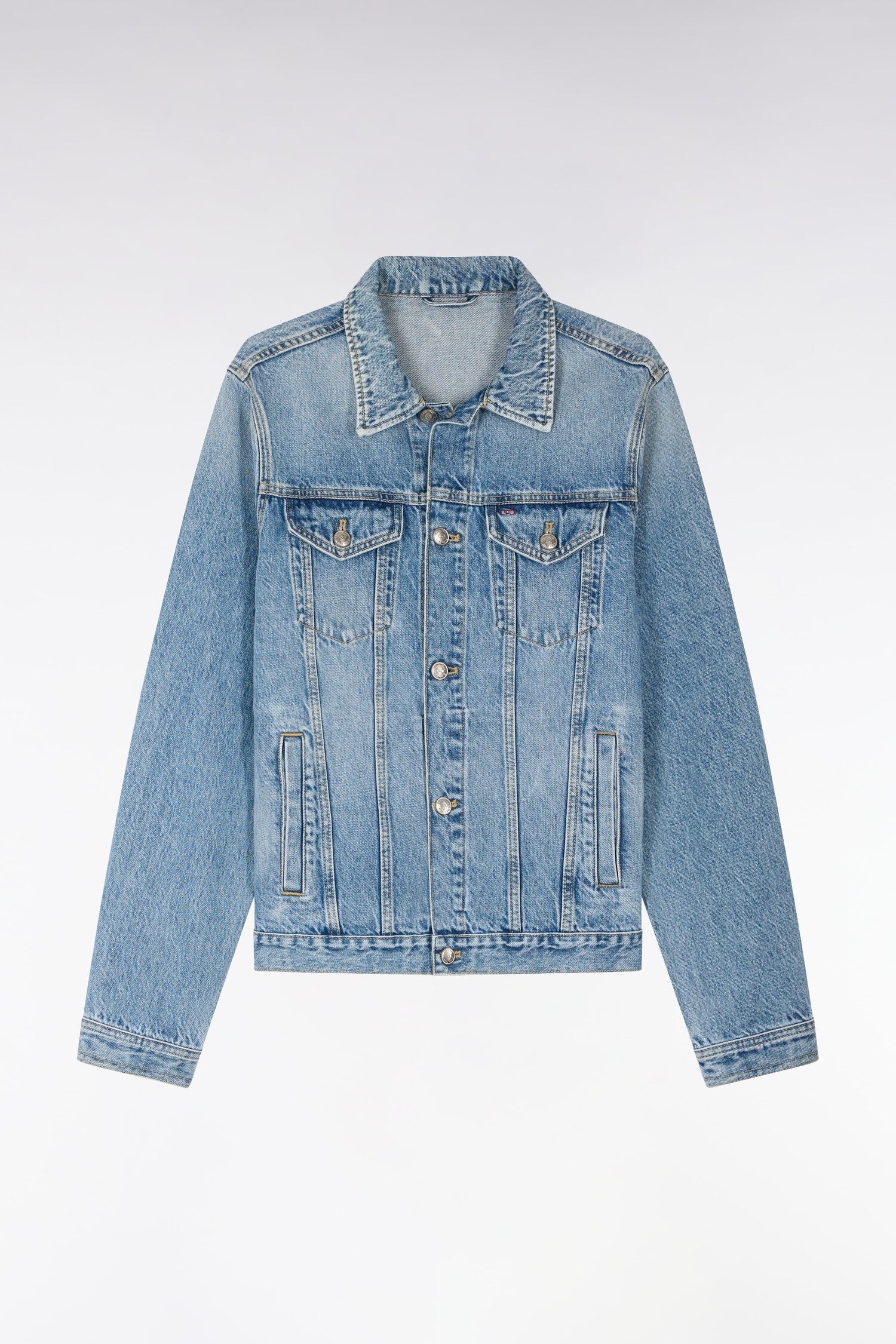 Pilier intemporel du vestiaire chic décontracté, le blouson en jean est décliné cette saison dans un denim bleu parfaitement délavé et une coupe droite polyvalente. C'est aussi par ses découpes soignées structurant la silhouette que ce blouson homme se distingue. Deux poches à rabat plaquées et deux poches côtés s'ajoutent à ce modèle qui vous accompagnera année après année, quelle que soit l'occasion.