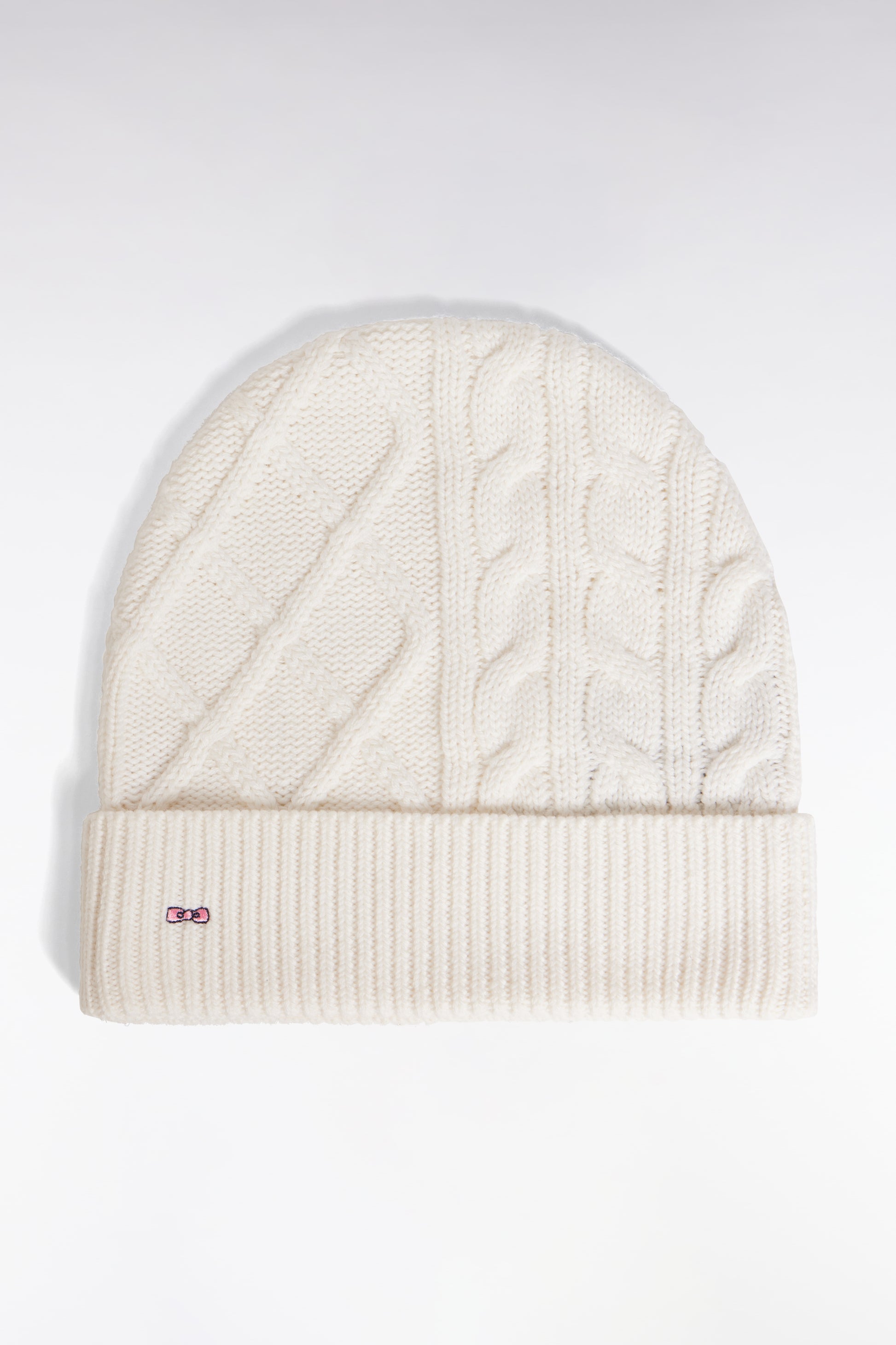This twisted beanie blends the softness of cotton with the natural warmth of wool, in a knit with a worked relief. Available in ecru or navy, it's a comfortable and elegant seasonal essential. A classic revisited with care by our French House.