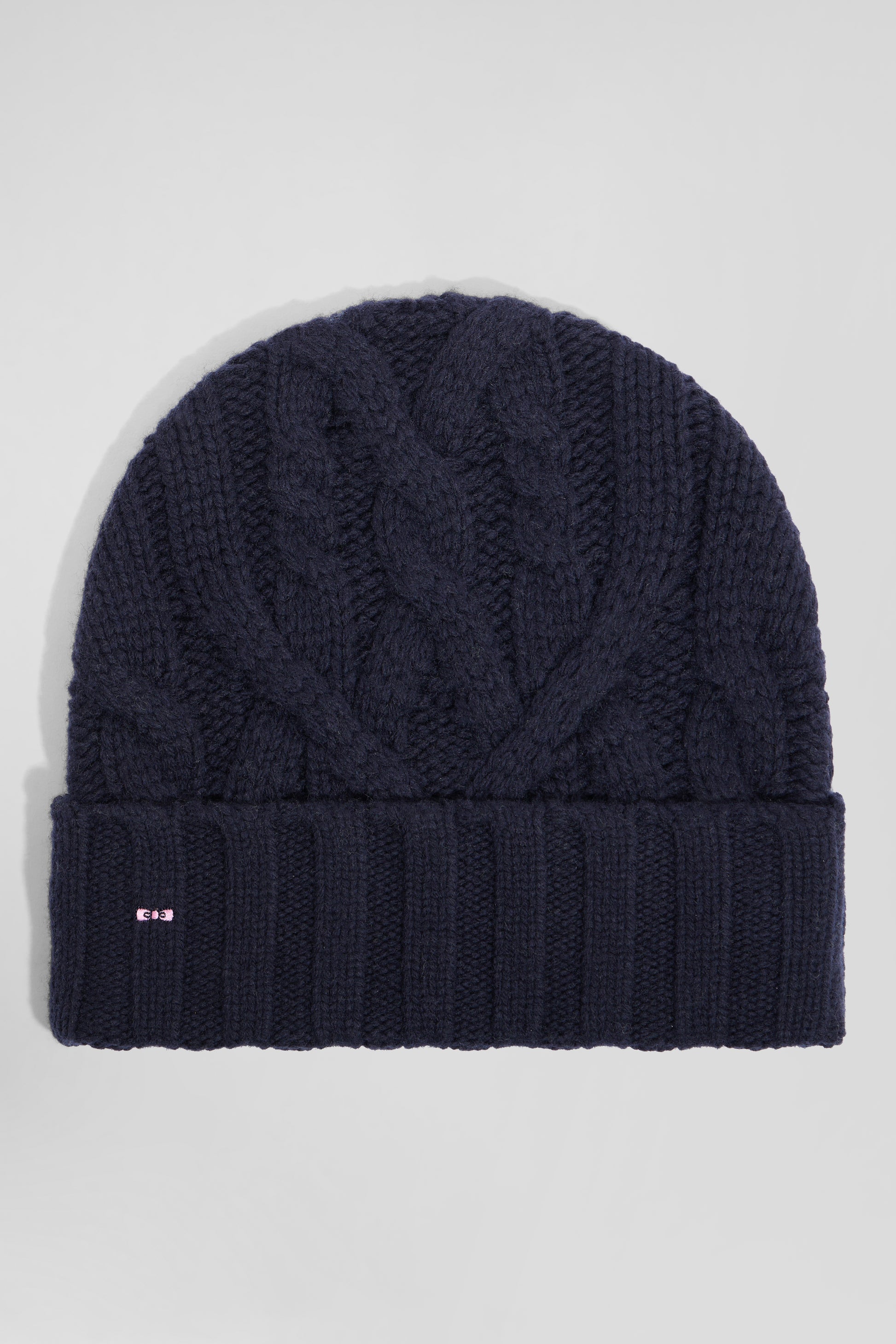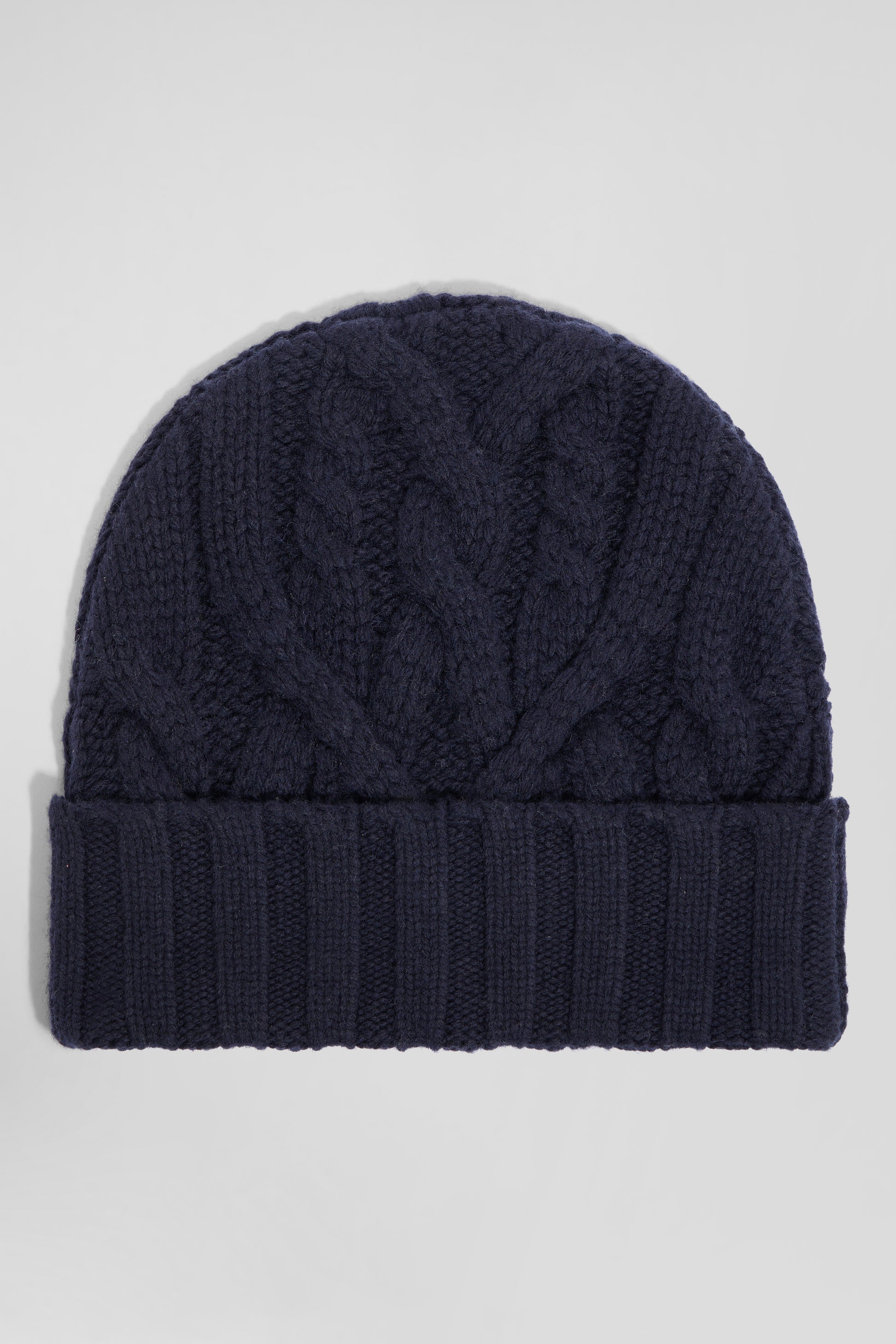 Navy blue cable knitted wool beanie