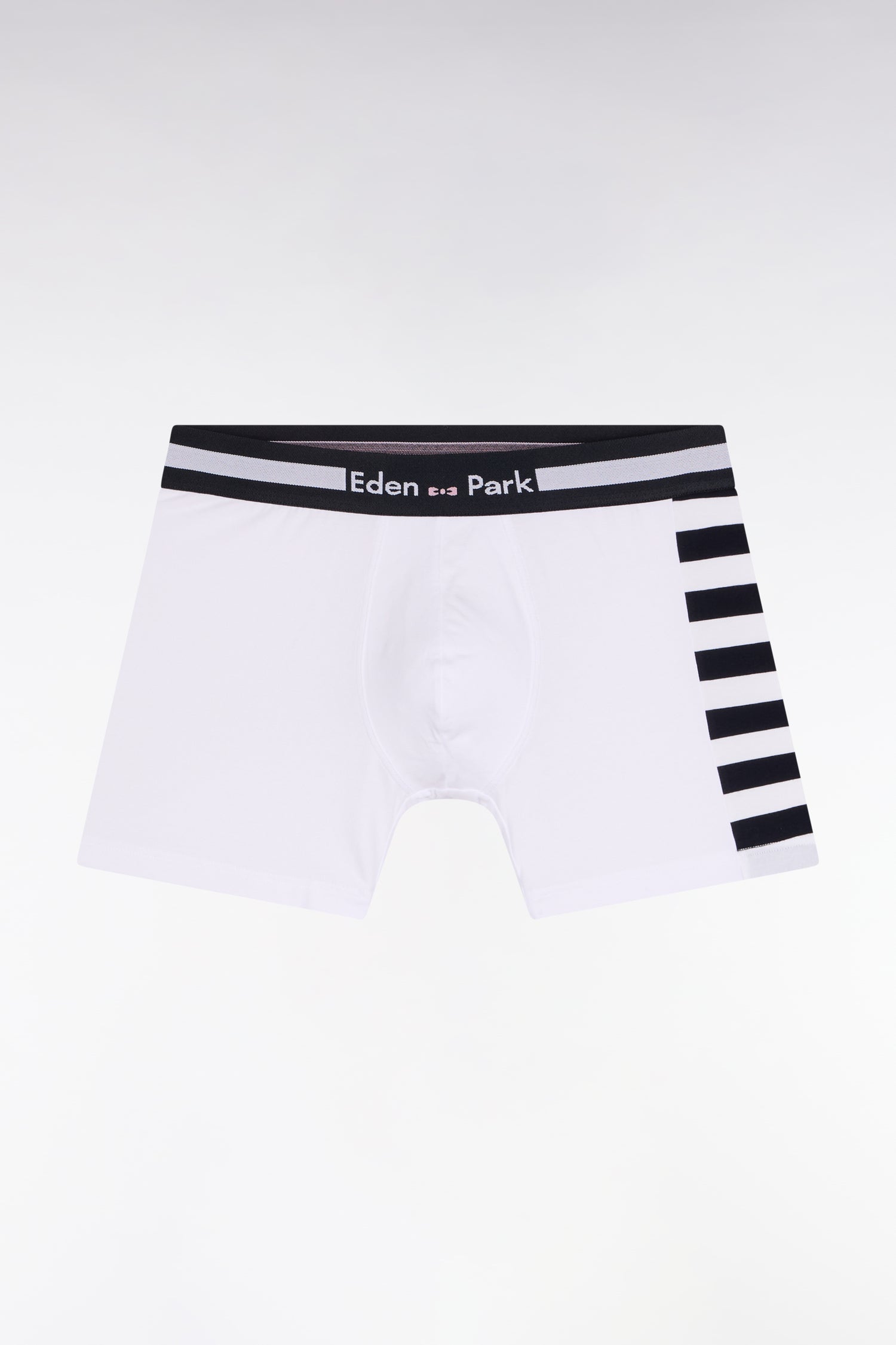 A subtle nod to rugby codes, these boxer shorts in stretch cotton jersey play on contrast with their navy stripes on the side. Perfect support and second-skin comfort thanks to a slim fit and Eden Park branded elasticated waistband.