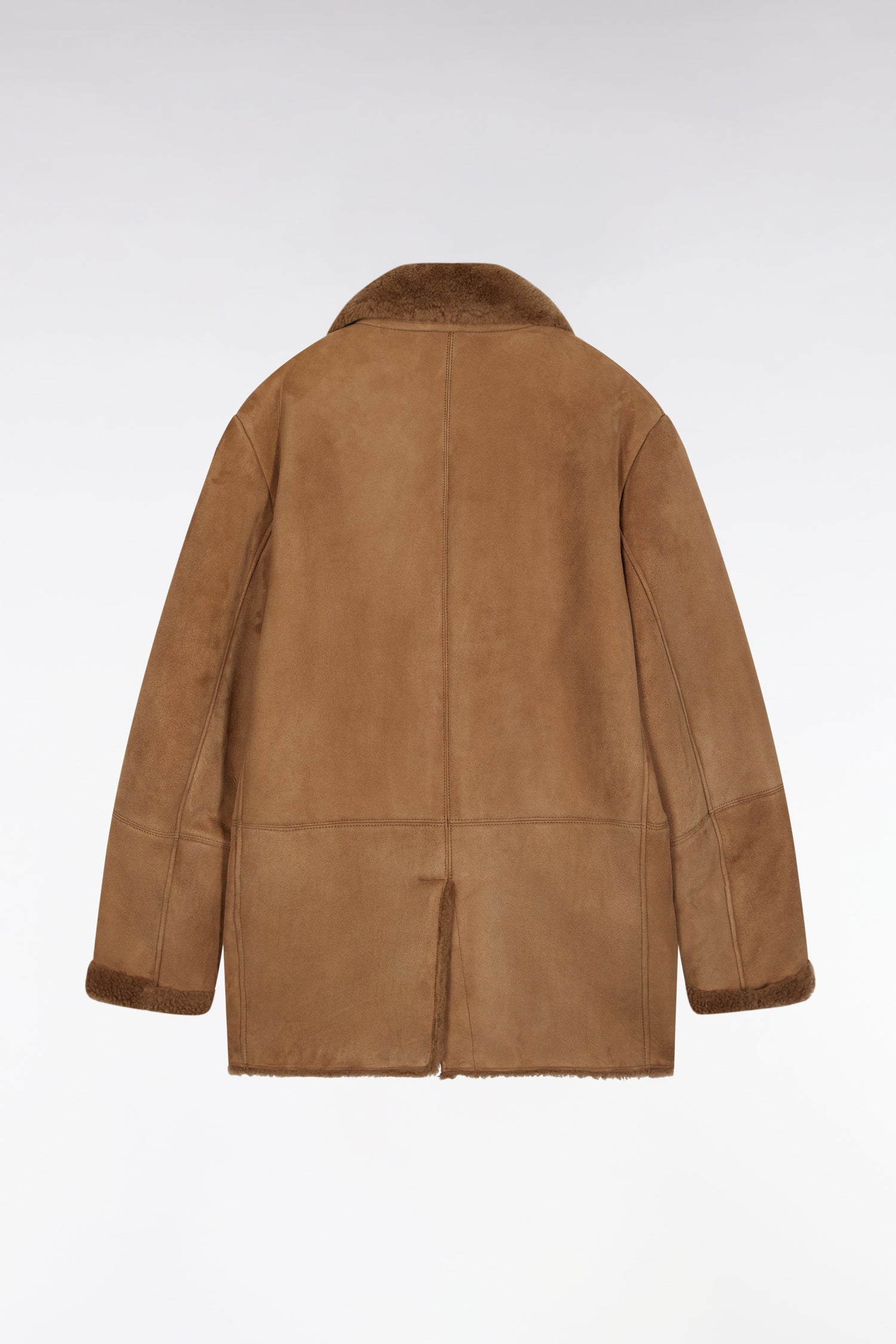 An exceptional piece crafted from genuine brown shearling, this shearling coat embodies the raw elegance of our men's fashion collections. Unlined to preserve the suppleness and character of the material, this coat seduces with its natural warmth, clean-edged finish and structured fall. The double-breasted buttoning, piped pockets and embossed leather patch on the sleeve reveal Eden Park's expertise and attention to detail. A timeless investment, designed to patina with style over the years.