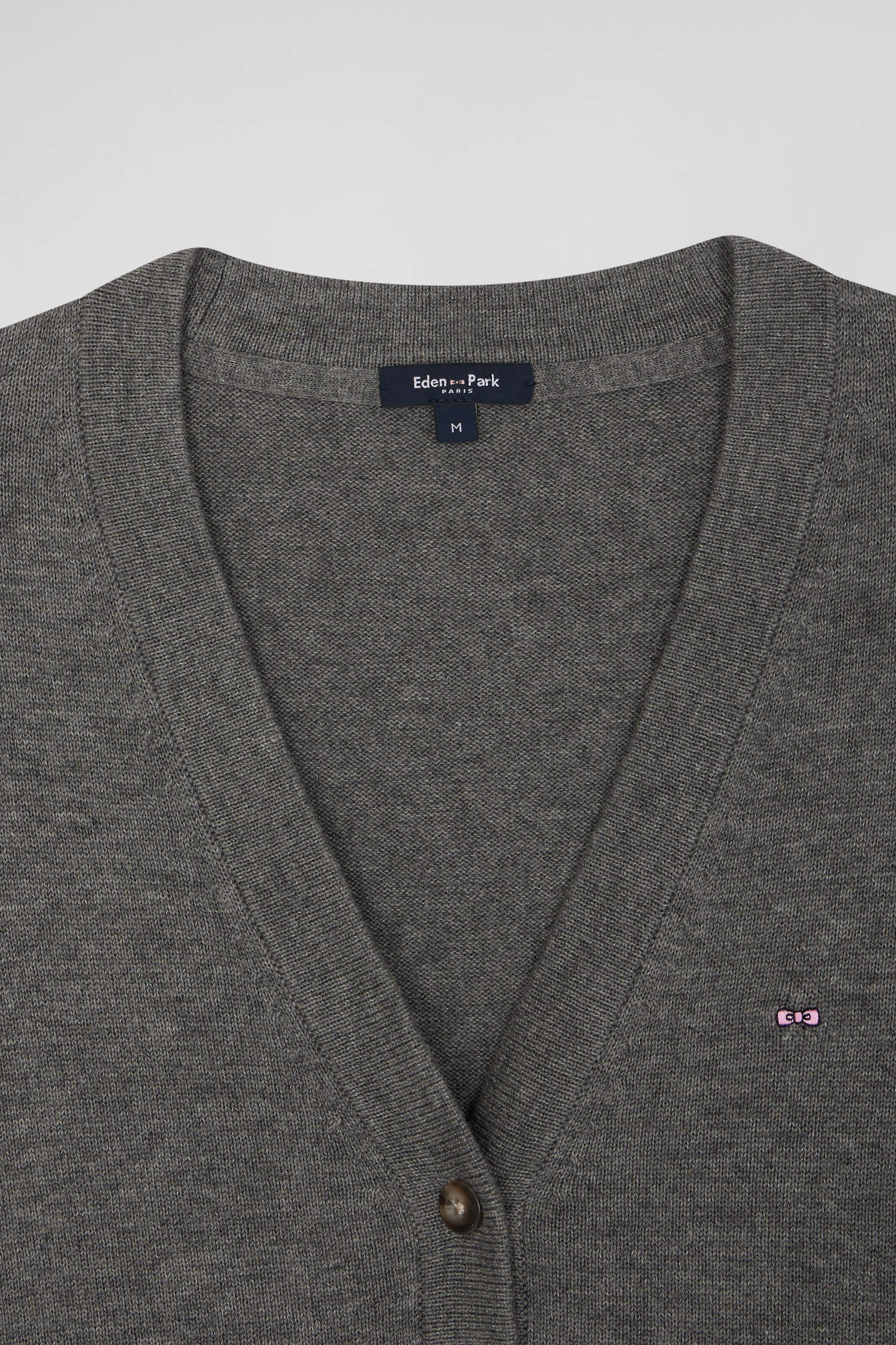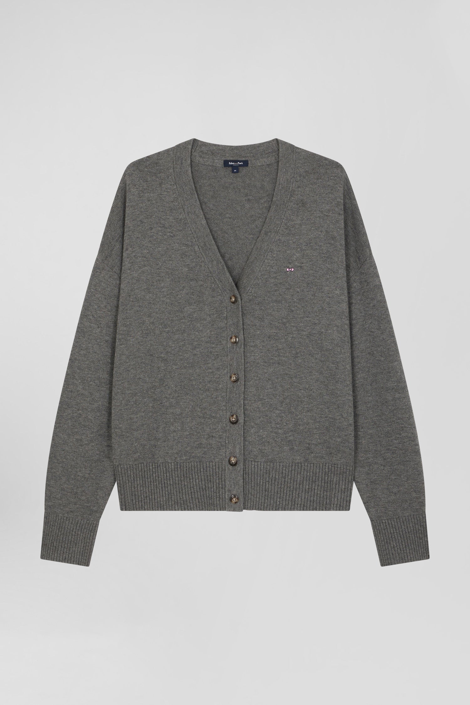 This timeless wool and cotton cardigan is available in six timeless colors to match your entire fall-winter wardrobe. Featuring classic buttoning and a V-neckline, this cardigan is slightly loose-fitting for easy layering, with ribbing at the sleeves and waist for a perfect fit. It's a safe choice for adding a touch of warmth and style to your wardrobe.
