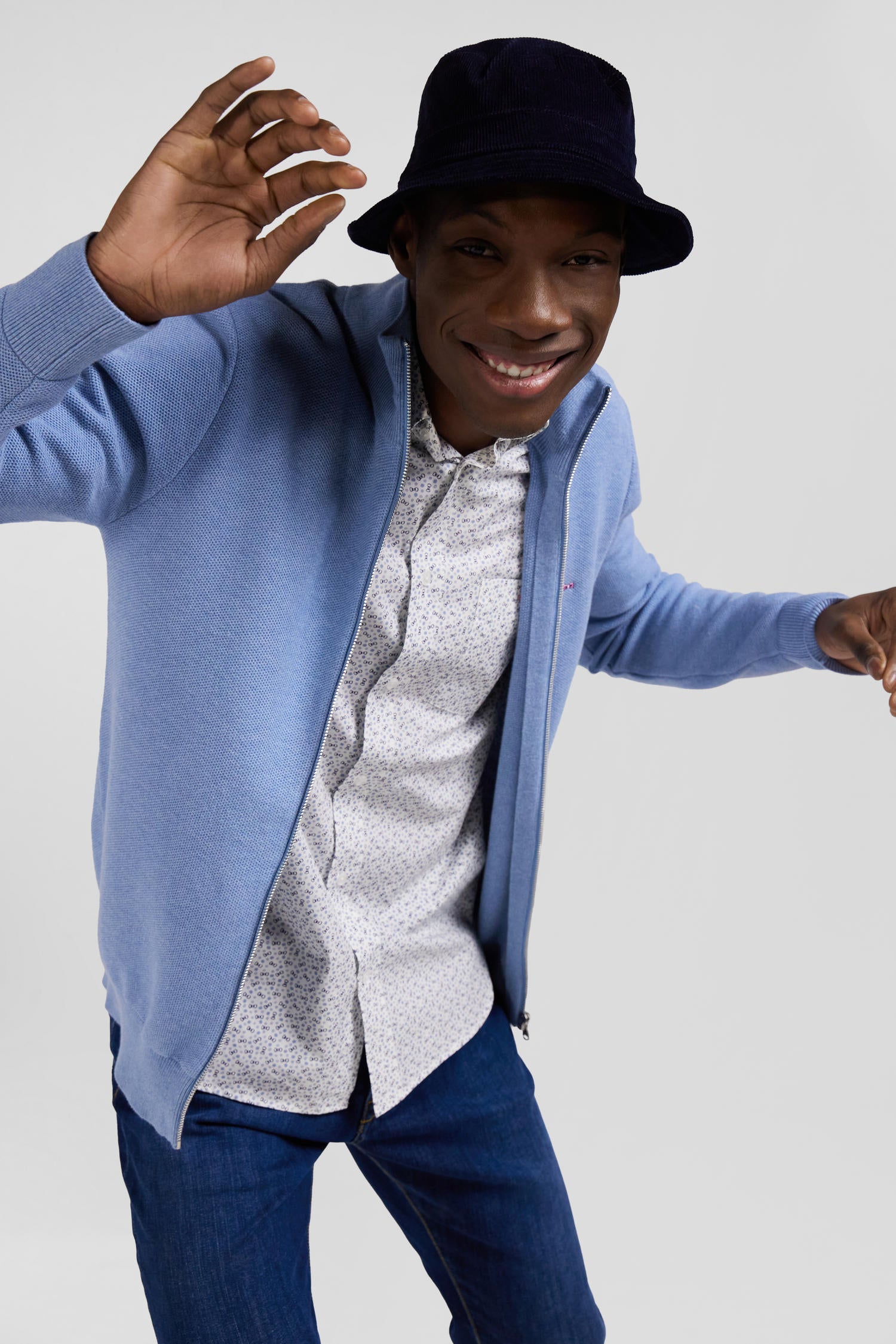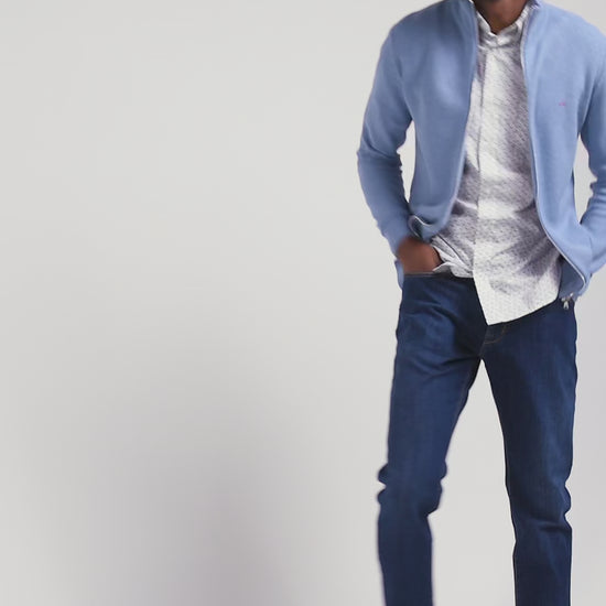 Our cotton zip-up cardigan is available in a range of our House's signature colors. Designed to offer both warmth and style, this versatile cardigan with its meticulous finishing touches is a men's wardrobe essential.