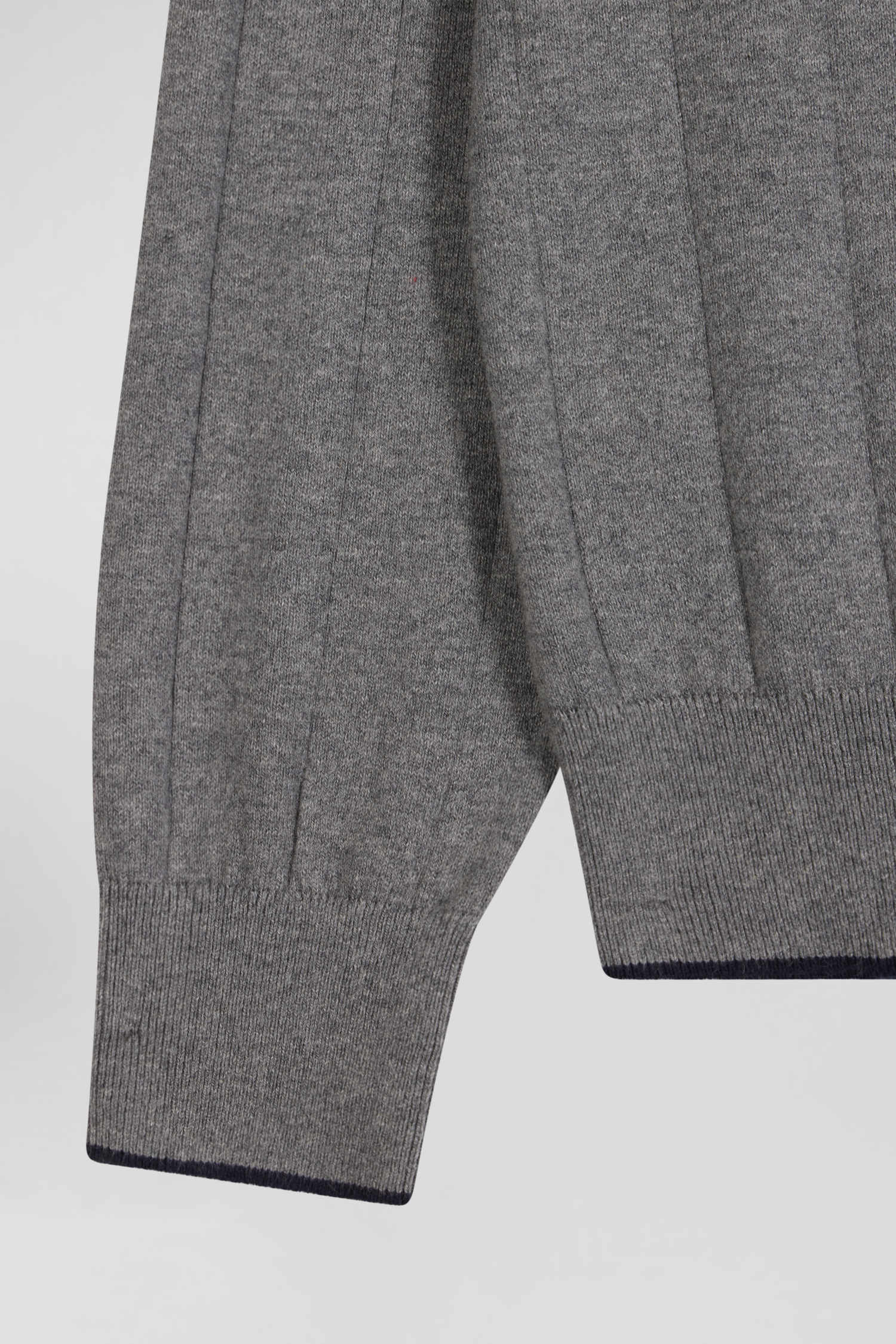 Regular grey cotton and cashmere zipped cardigan with vertical stripes