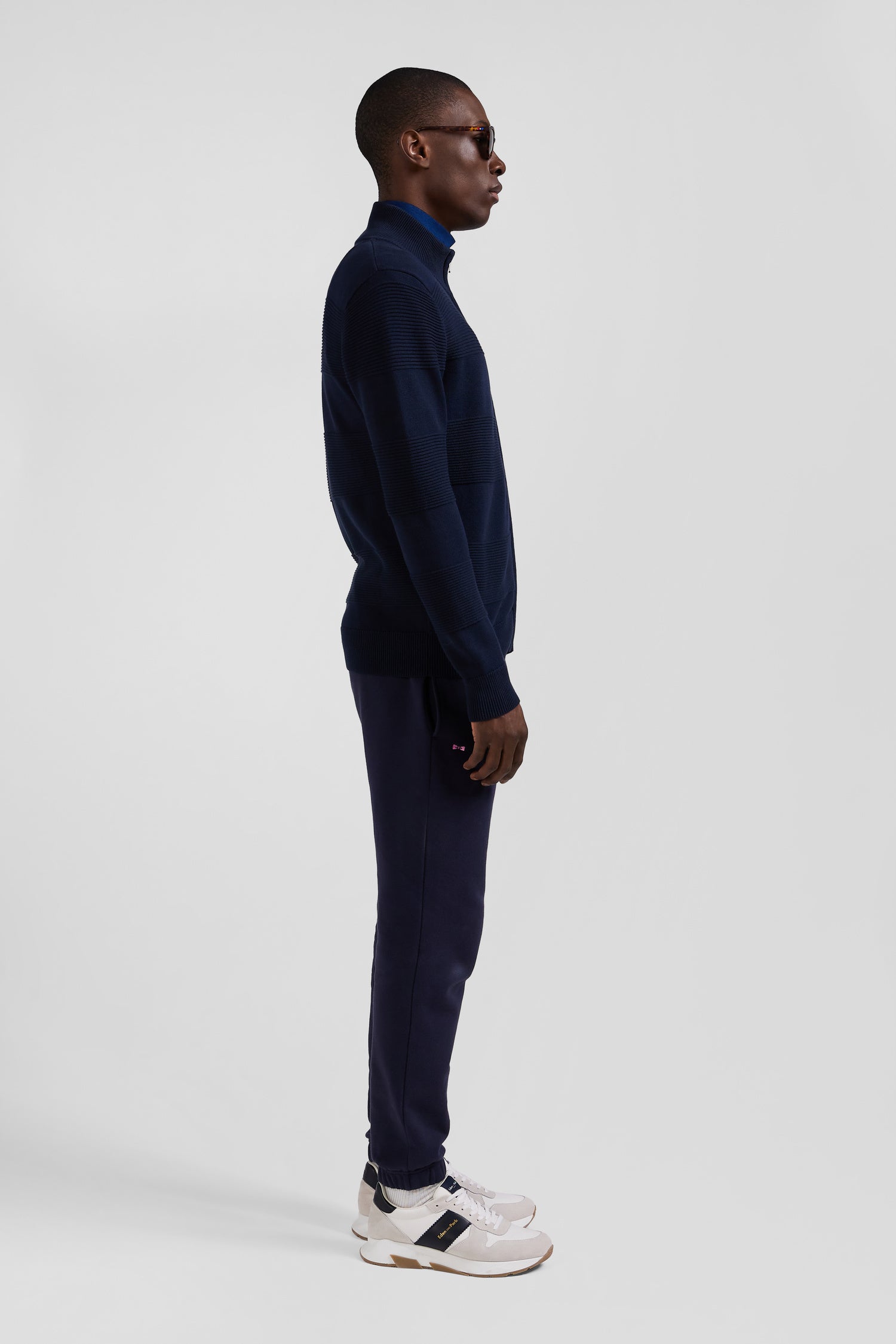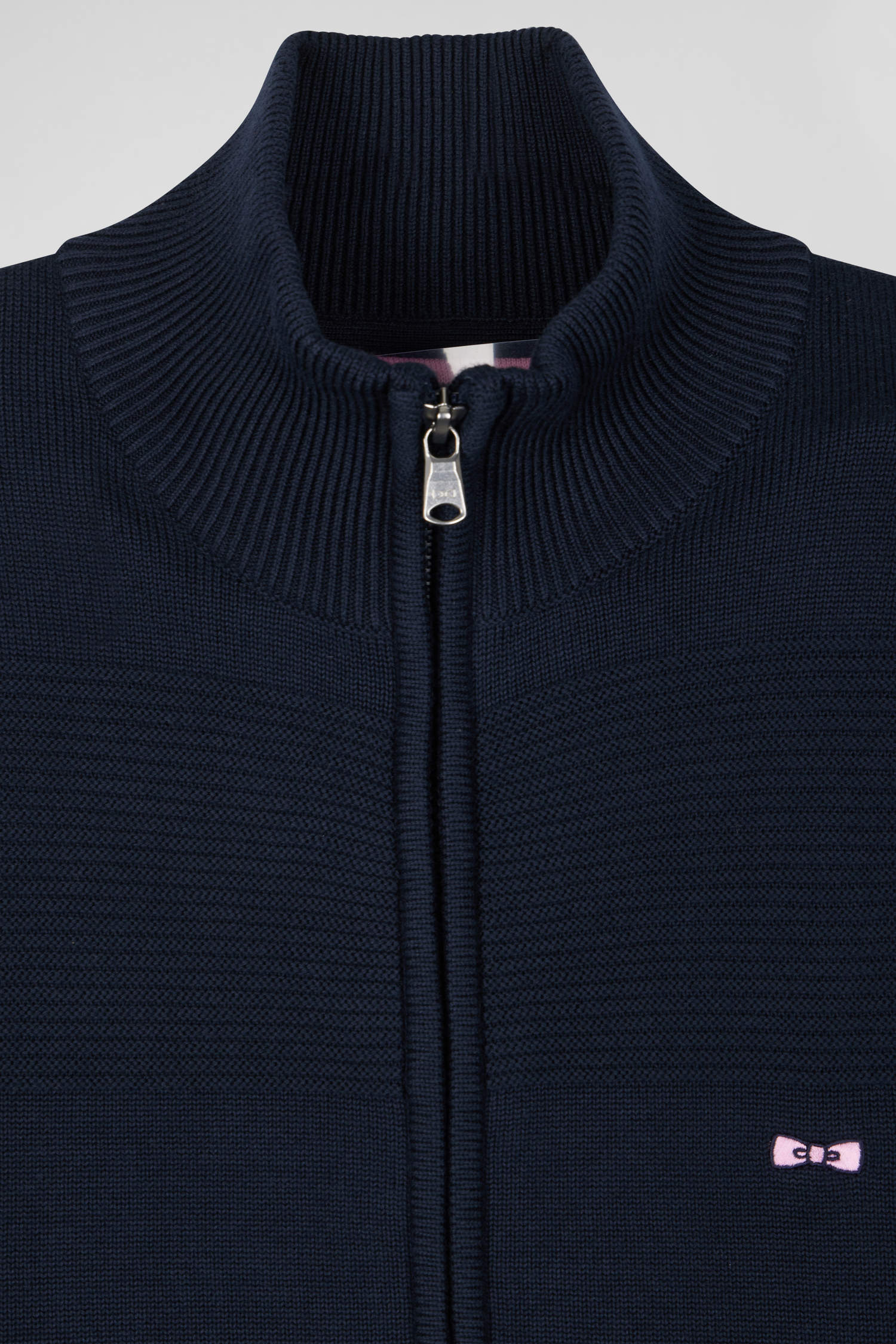 Embrace the Eden Park spirit with our unique zipped cardigan, where the play of knits creates a tone-on-tone striped effect, inspired by hooped rugby jerseys. Carefully crafted in cotton, this men's cardigan offers both comfort and style.