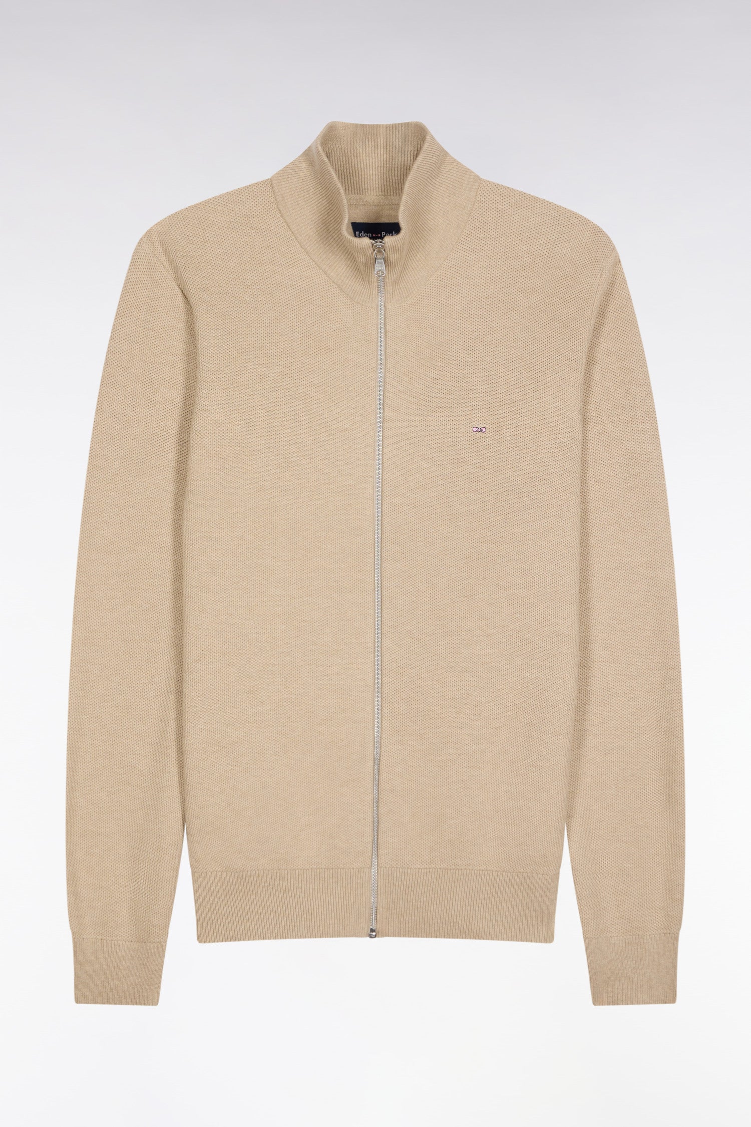 This zipped cardigan in cotton and wool jersey is a classic for men's autumn-winter wardrobes. The bowtie embroidery on the chest adds a distinctive signature to this minimalist model, with its stand-up collar guaranteeing comfort and elegance for everyday wear.