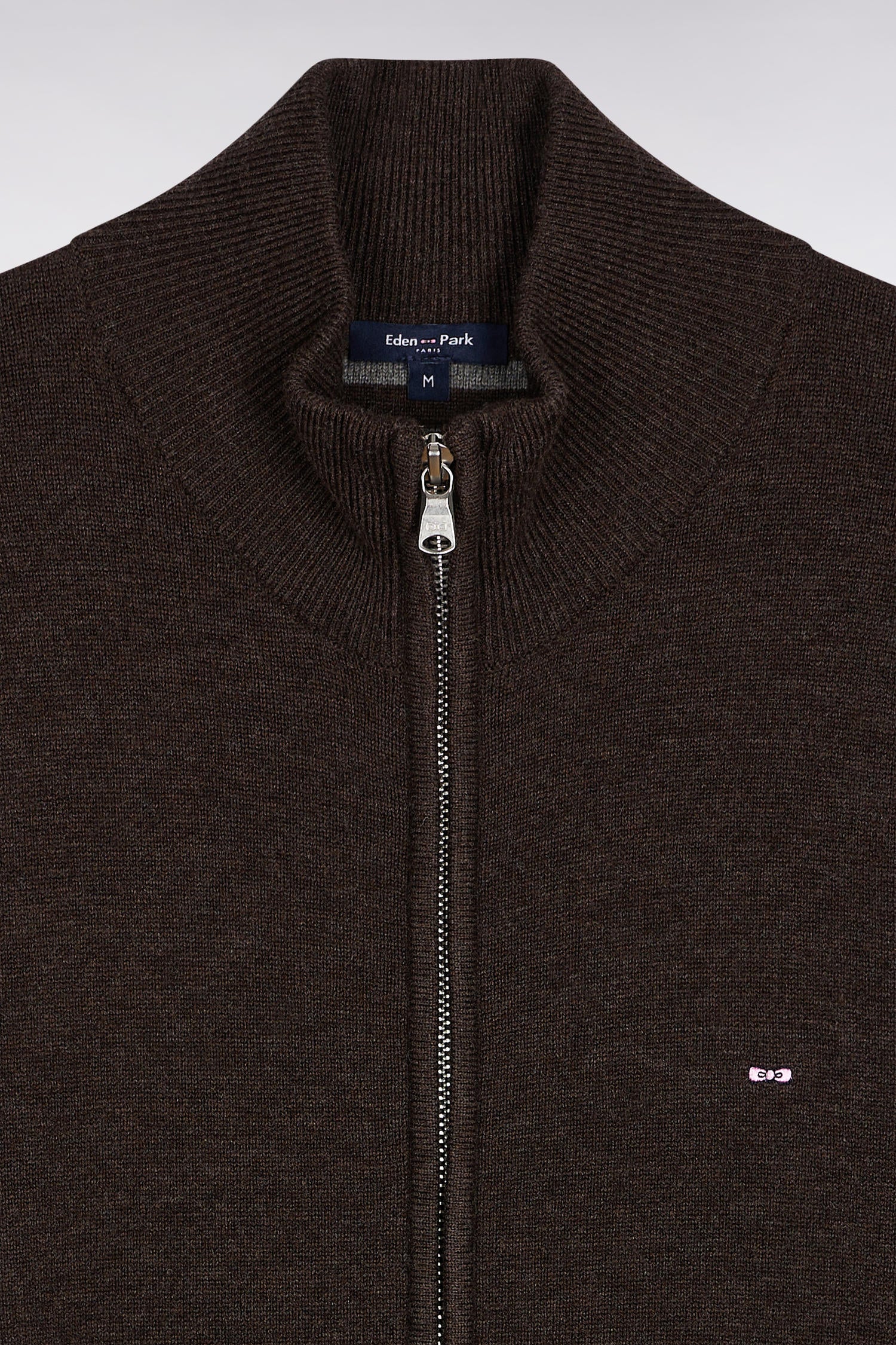 Zipped cardigan in wool and brown cotton, straight cut