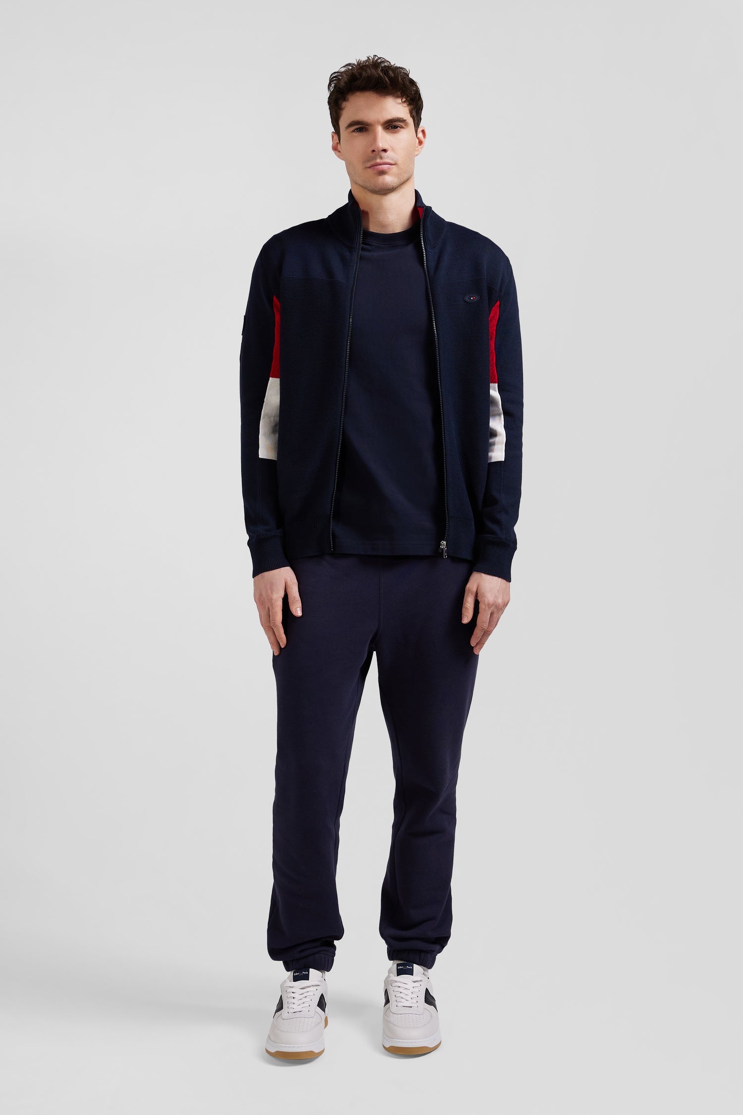 Regular XV de France navy blue cotton zipped cardigan with tricolour details