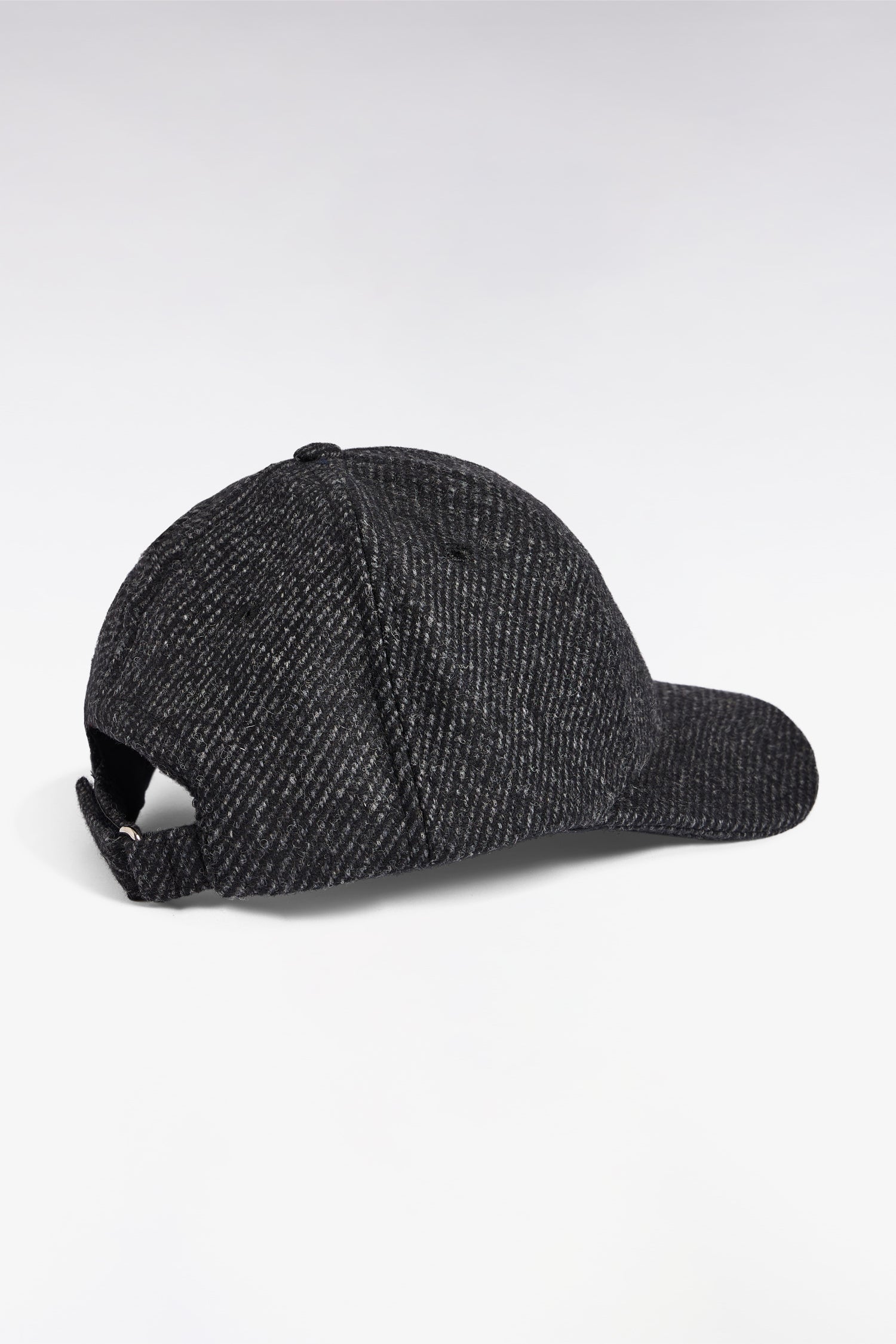 This cap in grey wool herringbone is made of elegant, noble materials with a lightly textured finish. A sober, refined accessory, ideal for adding a chic touch to your seasonal outfits.