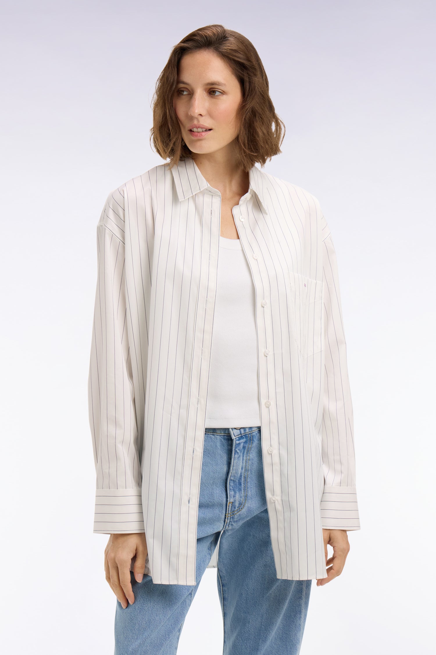 Chemise à fines rayures en popeline de coton blanche coupe oversized