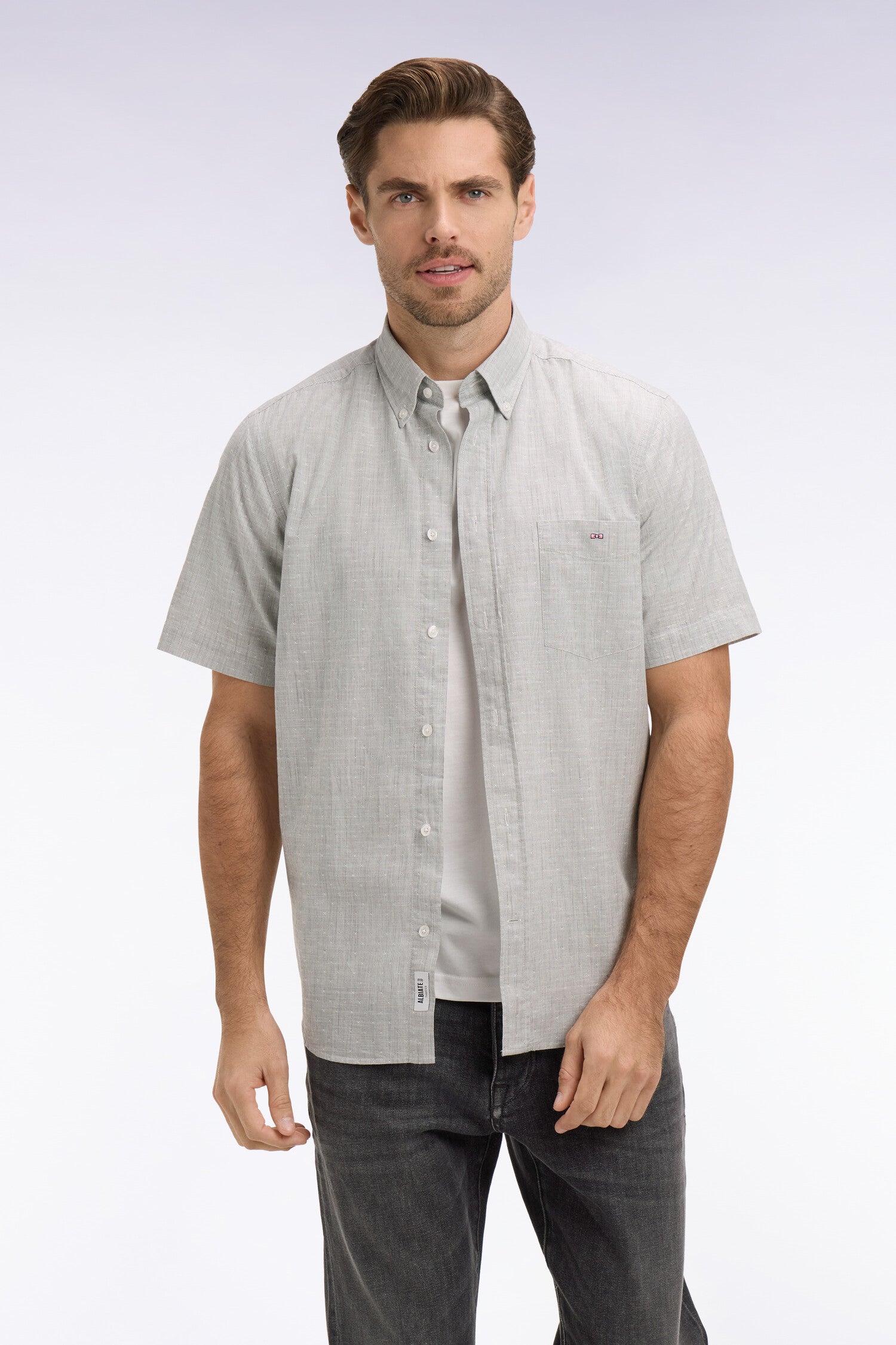 Subtilement texturée grâce à un tissage jacquard Dobby, cette chemise à manches courtes en tissus italien à rayures bâton conjugue élégance et fraîcheur. Son motif tissé ton sur ton reflète l’expertise de la Maison dans le choix d'étoffes confortables, durables et élégantes. Polyvalente et raffinée, cette chemisette en coton se prête aussi bien aux tenues décontractées qu’aux looks plus habillés grâce à un large choix de coloris saisonniers.