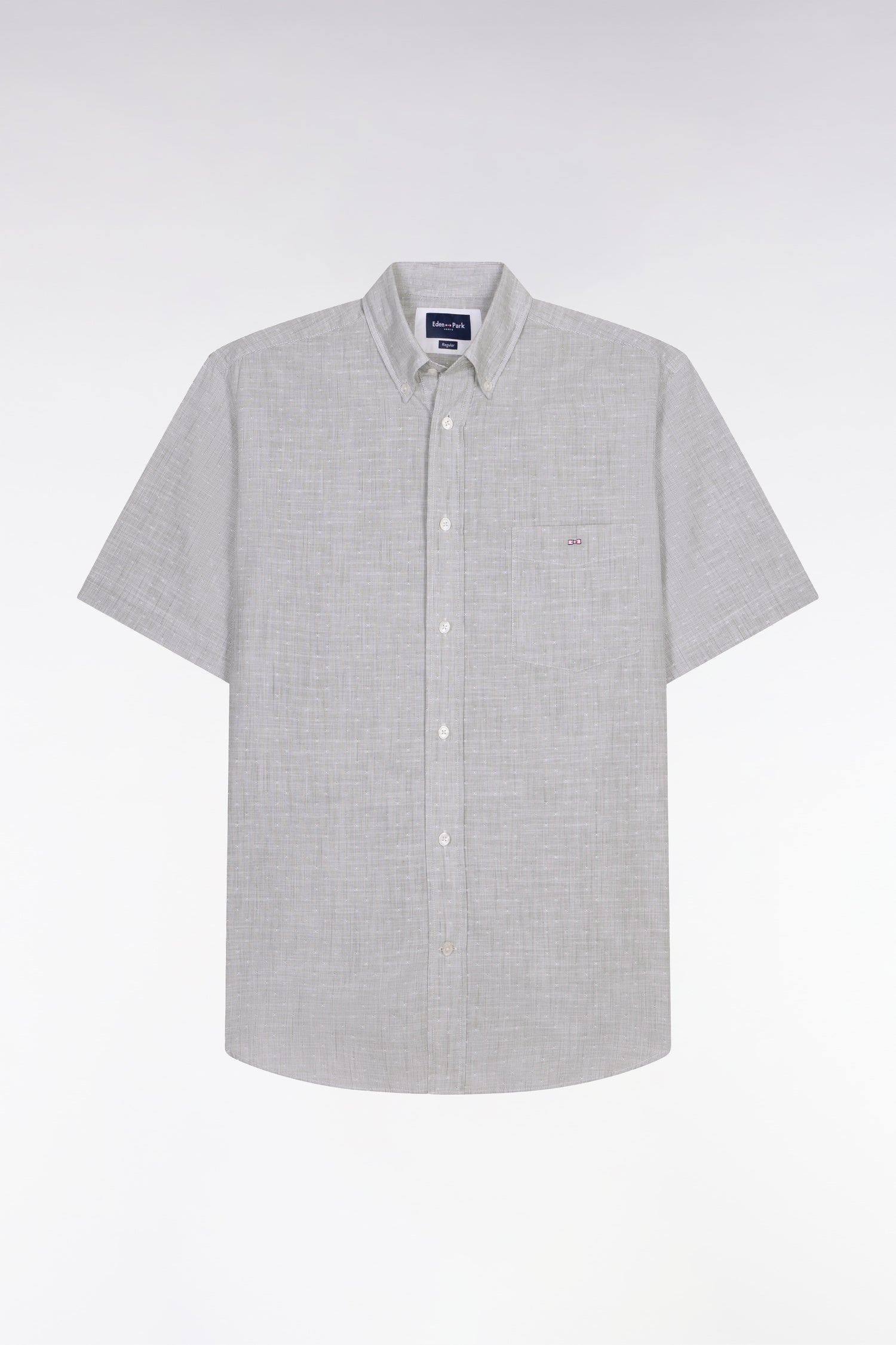 Chemise à manches courtes en coton jacquard rayé kaki