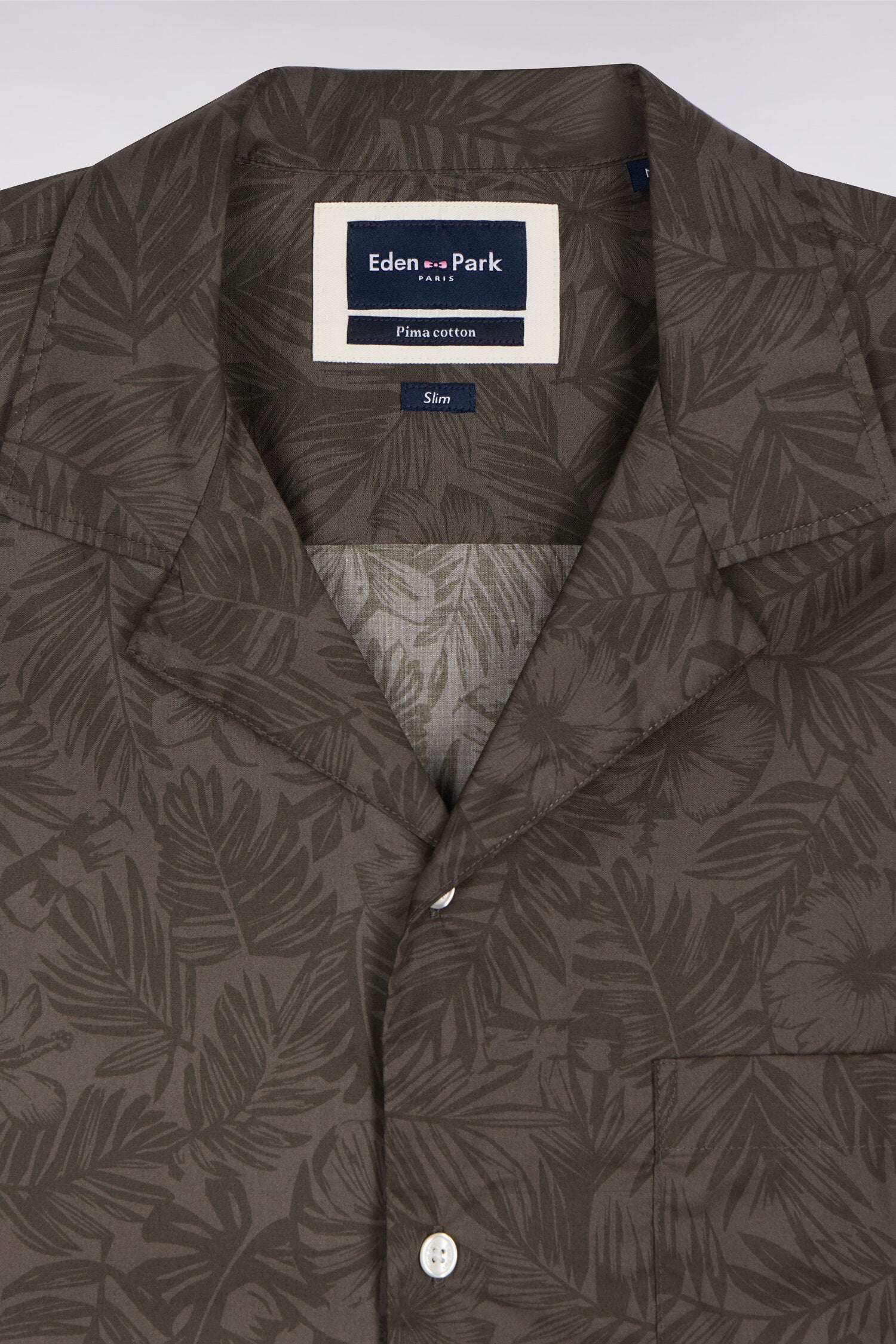 Chemise à manches courtes en coton Pima kaki imprimé végétal