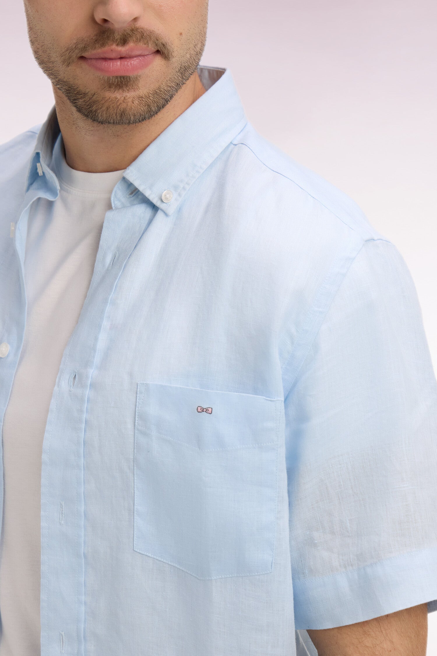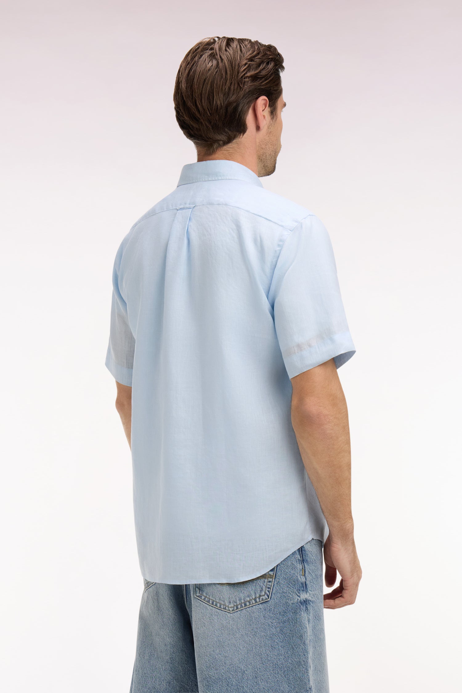 Chemise à manches courtes en lin ciel