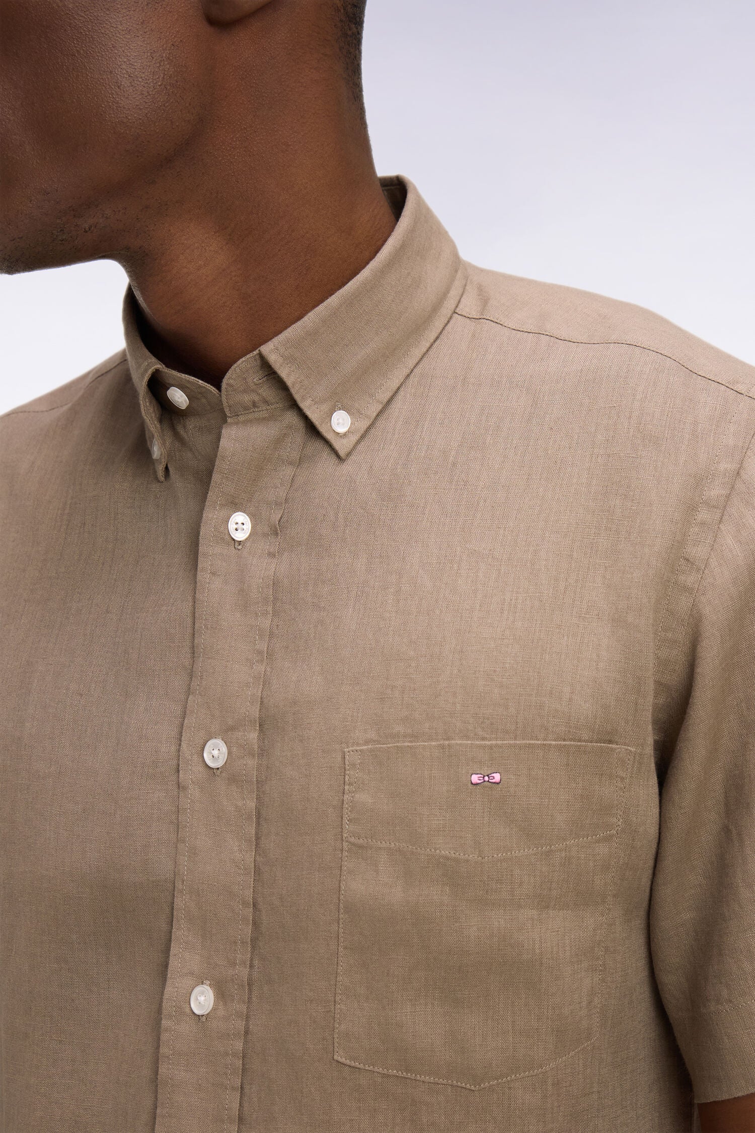 Chemise à manches courtes en lin kaki