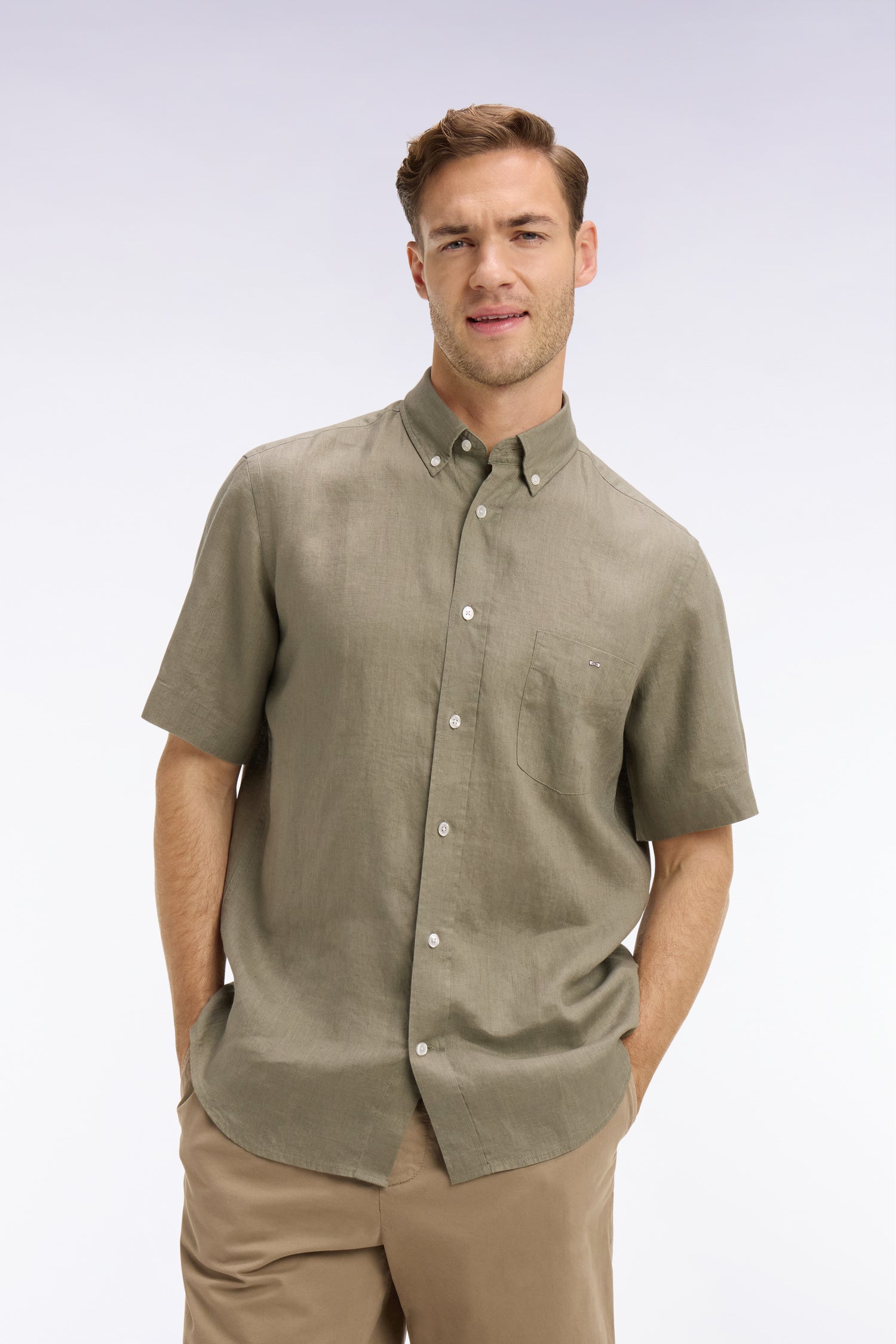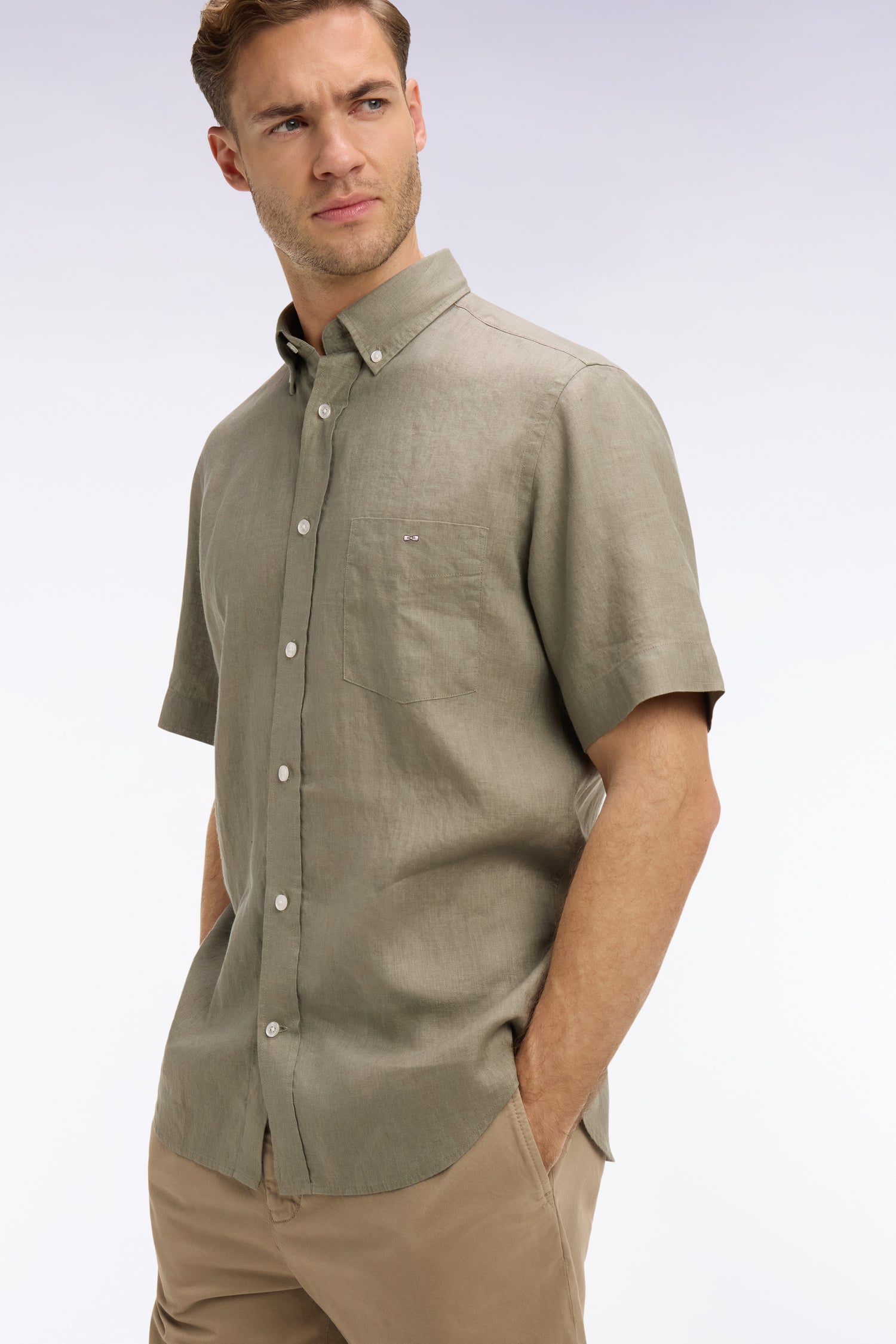 Cette chemise à manches courtes en lin pur s’impose comme l’incontournable de la saison été. Légère, respirante et naturellement texturée, cette chemise masculine offre un confort incomparable lorsque les températures s’élèvent. Sa coupe droite à pans arrondis et son col à pointes libres lui confèrent une allure décontractée mais toujours soignée, idéale pour passer avec aisance de la ville aux vacances. Déclinée dans une large palette de coloris, des tons naturels aux nuances plus lumineuses, cet indispensable se coordonne aisément à un chino léger comme à un short en toile. Ses finitions discrètes et sa matière noble, font de cette chemise en lin le pilier d'un vestiaire estival, frais et élégant.