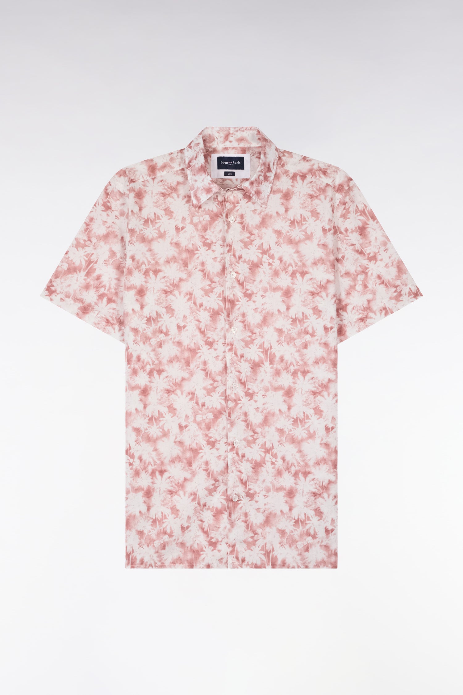 Chemise à manches courtes en popeline de coton à motif floral bordeaux coupe slim