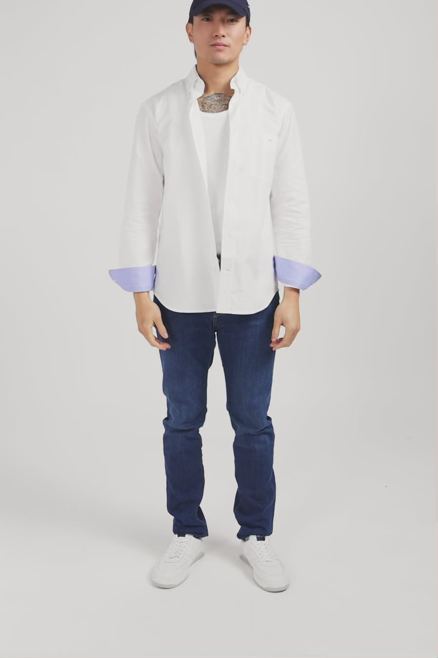 This shirt is woven in cotton. The fitted cut and plain colour scheme make it an iconic piece