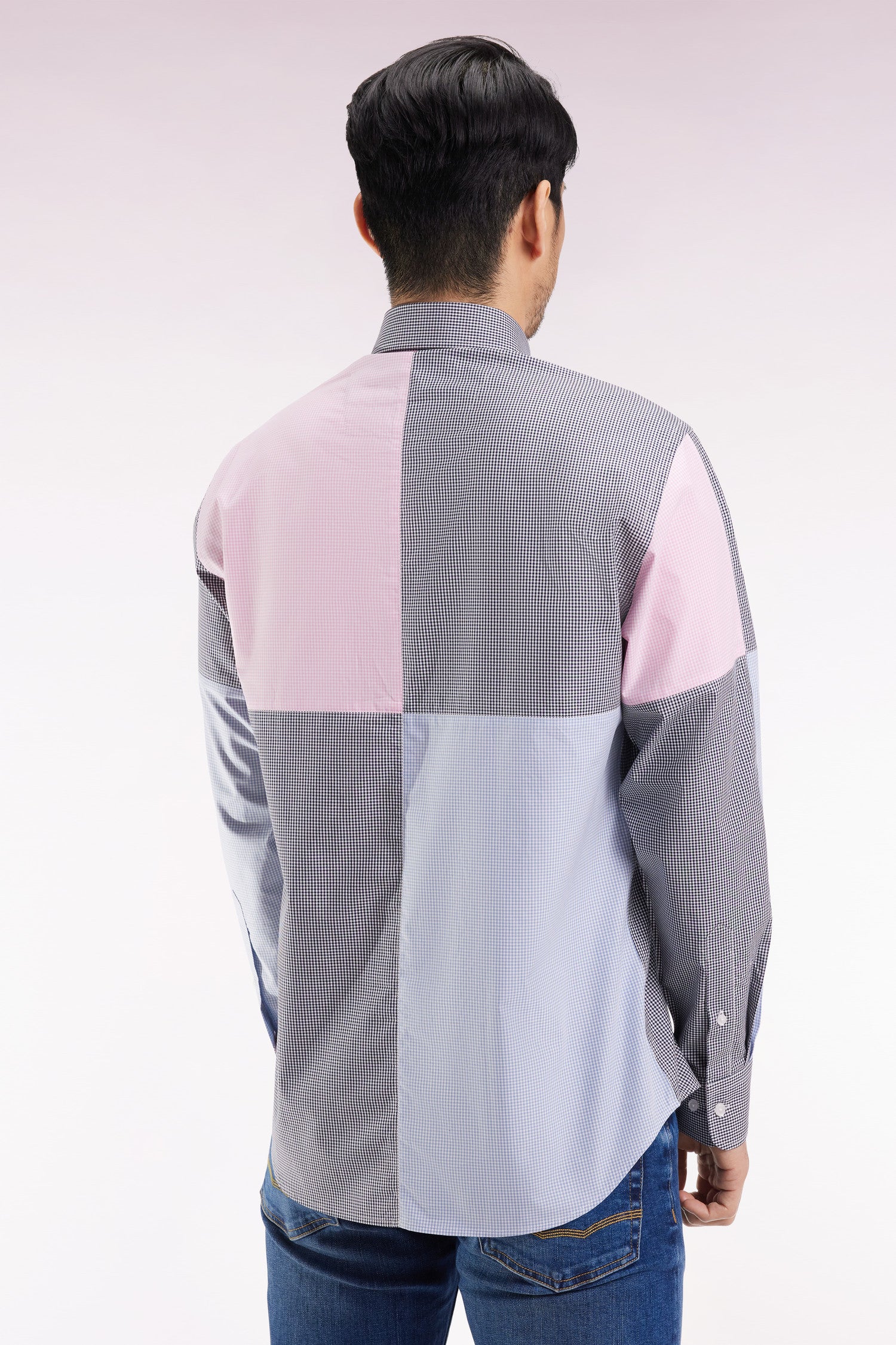 Blue and pink shirt, four dials, straight cut