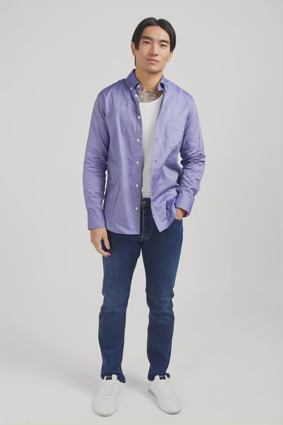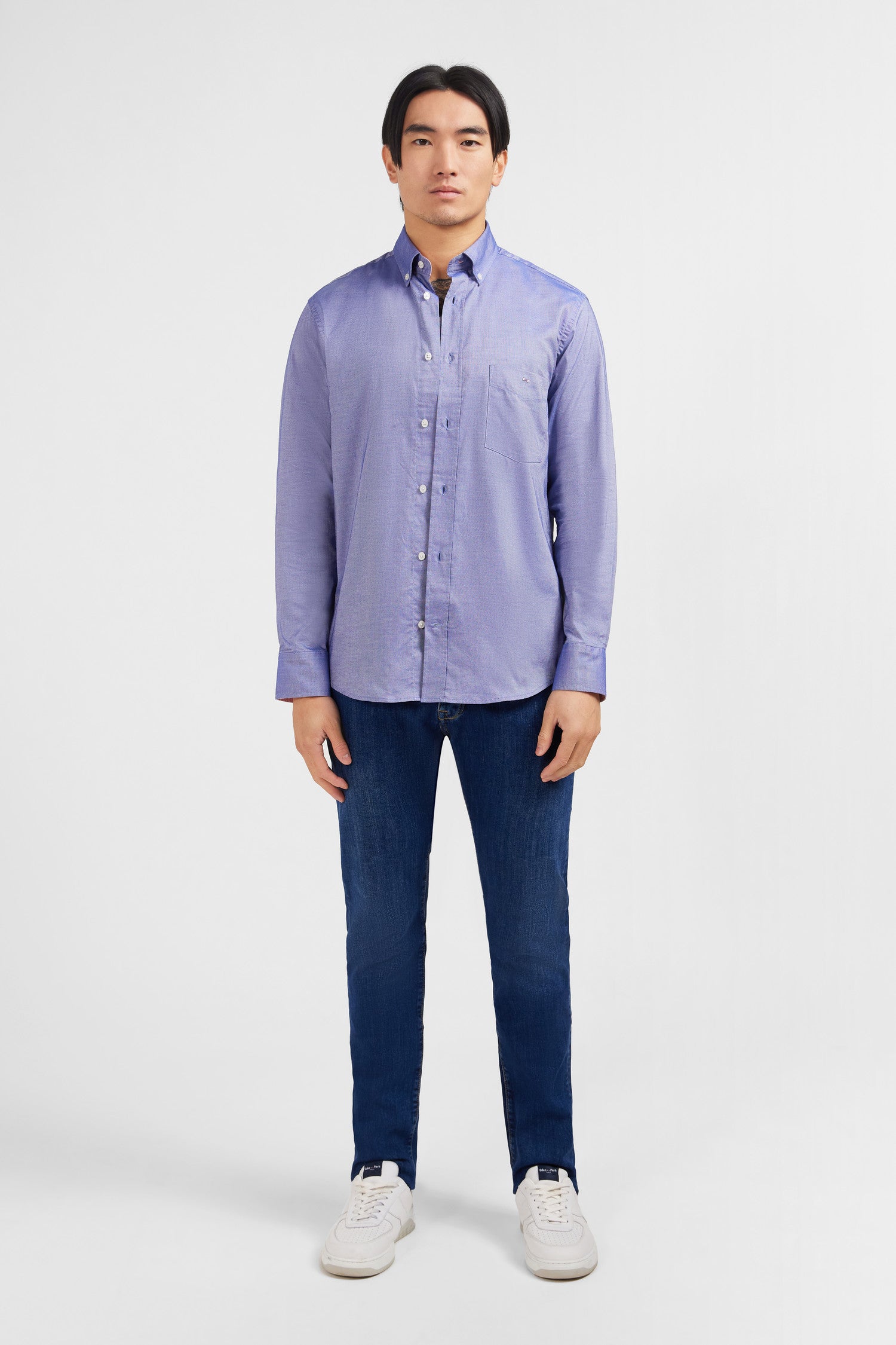This shirt is woven in cotton. The fitted cut and plain colour scheme make it an iconic piece