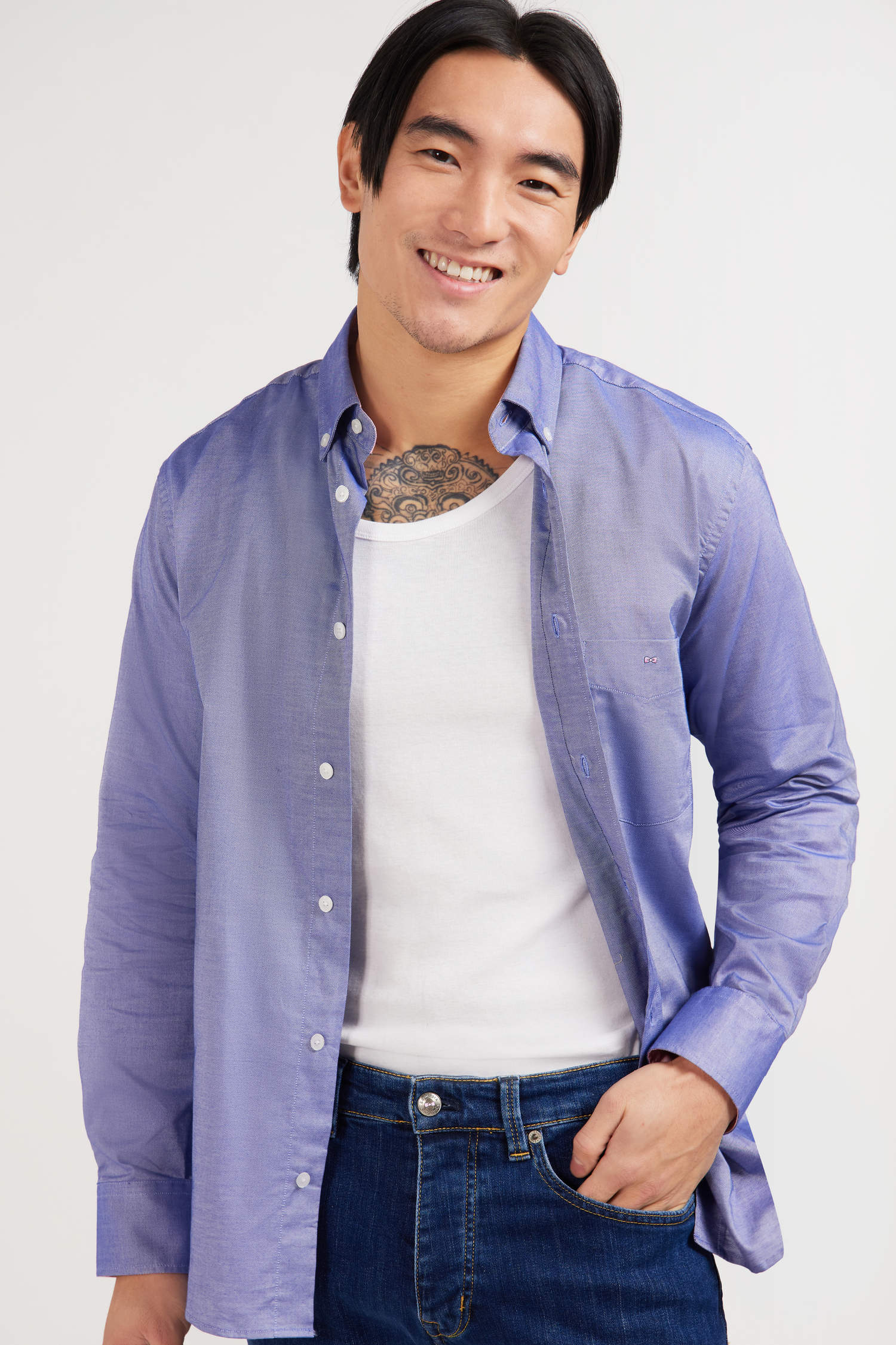 • Button-free shirt collar