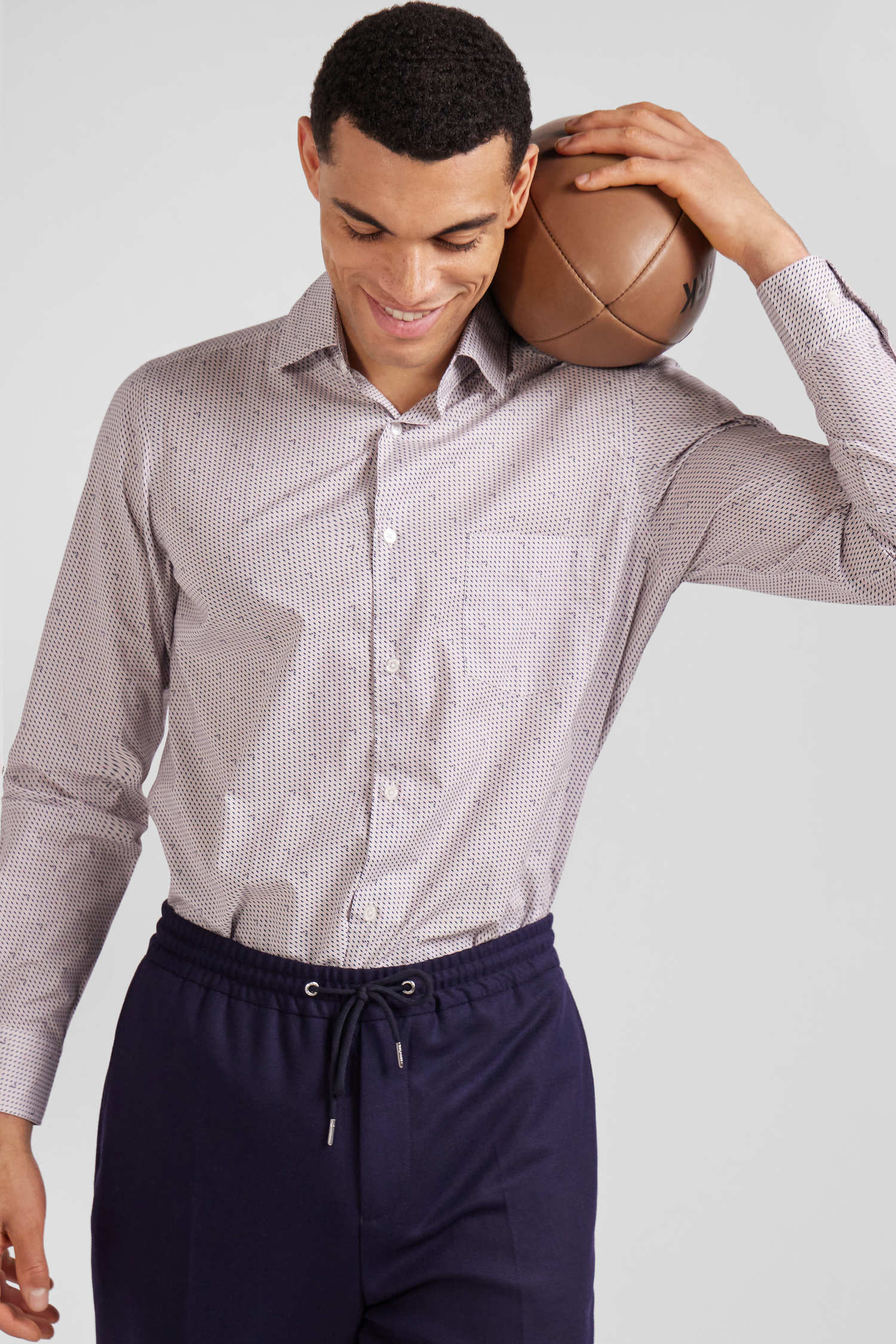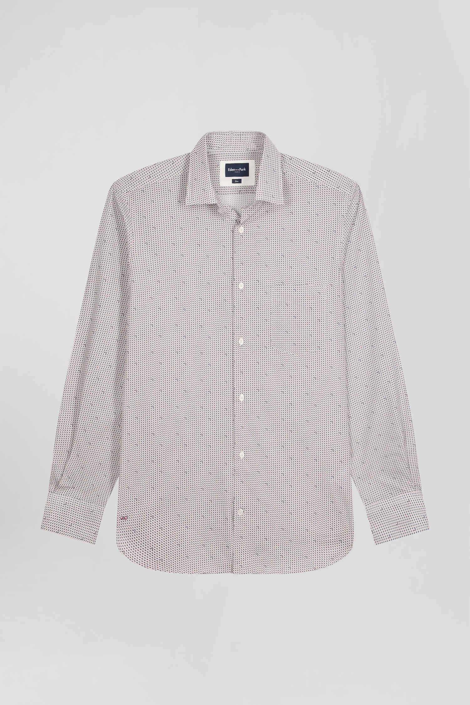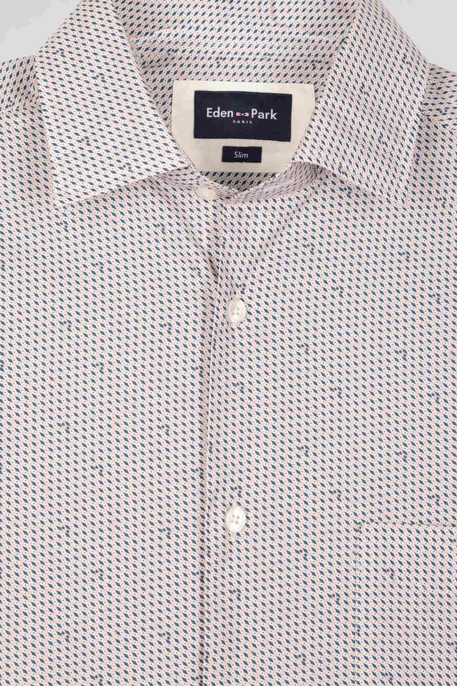 This slim-fit shirt in pink cotton is accented with graphic micro-patterns for a contemporary touch. With its chest pocket and slim fit, this easy-to-wear men's shirt offers sophisticated, on-trend styling for everyday wear or a dressier occasion.