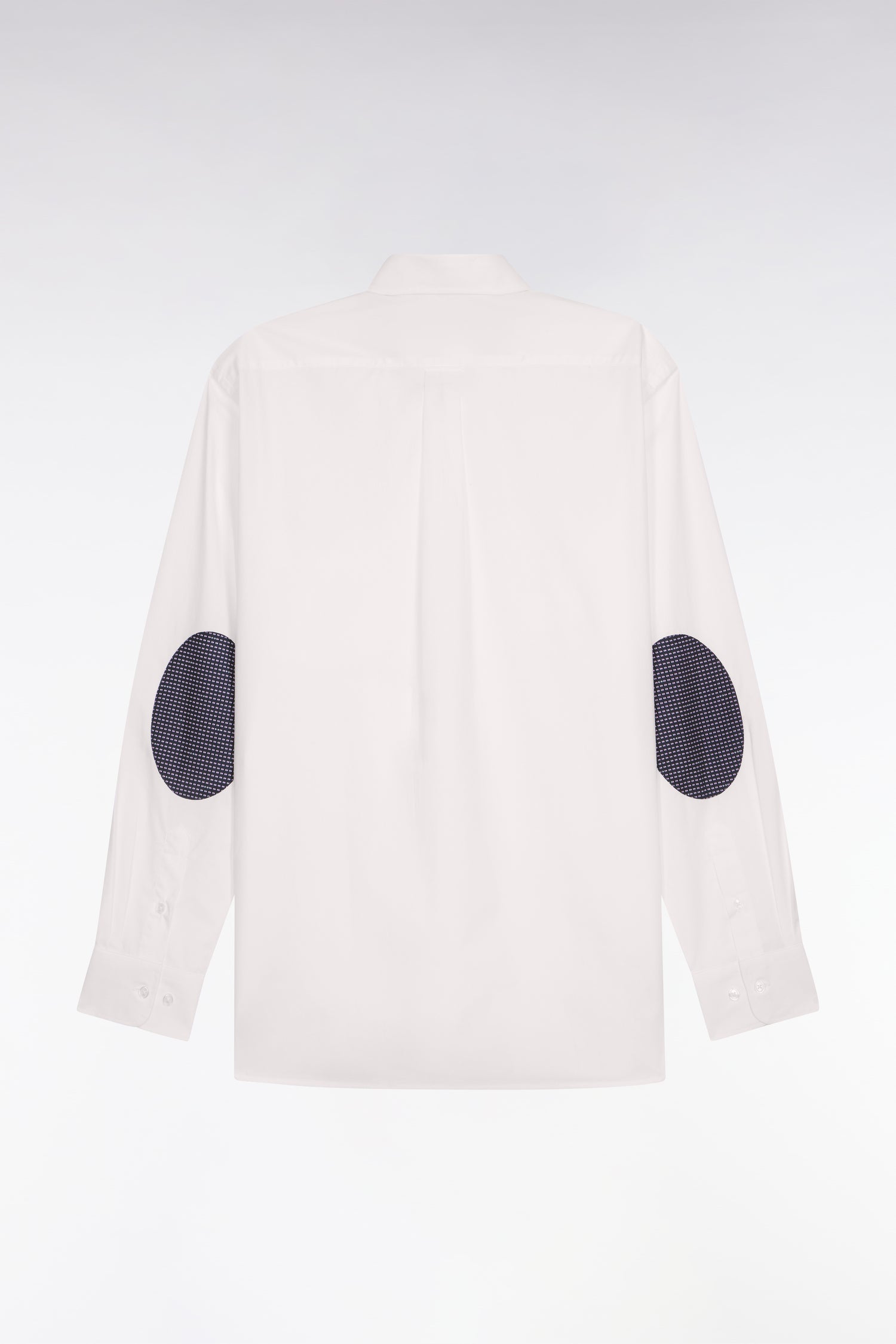 Cette chemise à manches longues en popeline de coton associe sobriété et détails soignés. Animée d’un micro motif discret sur ses coudières patchées, elle revisite un classique du vestiaire masculin avec une touche contemporaine typique de l'esprit French Flair Eden Park. Sa coupe droite et son col à pointes boutonnées assurent un porté confortable et polyvalent. La poche poitrine ornée du nœud brodé signe l’identité Eden Park, tandis que le pli dos garantit une belle amplitude de mouvement. Déclinée en 4 coloris intemporels, cette chemise est une alliée idéale pour composer des silhouettes estivales et élégantes.