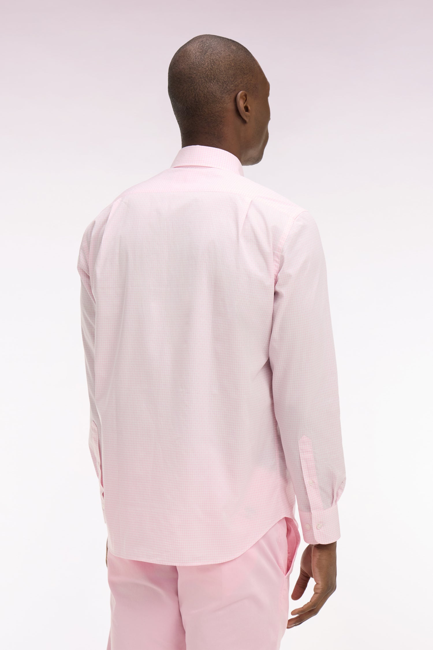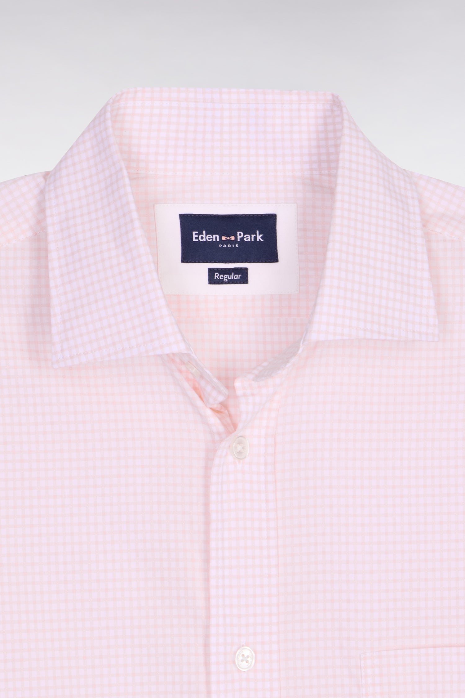 Chemise en coton dobby à carreaux rose coupe regular