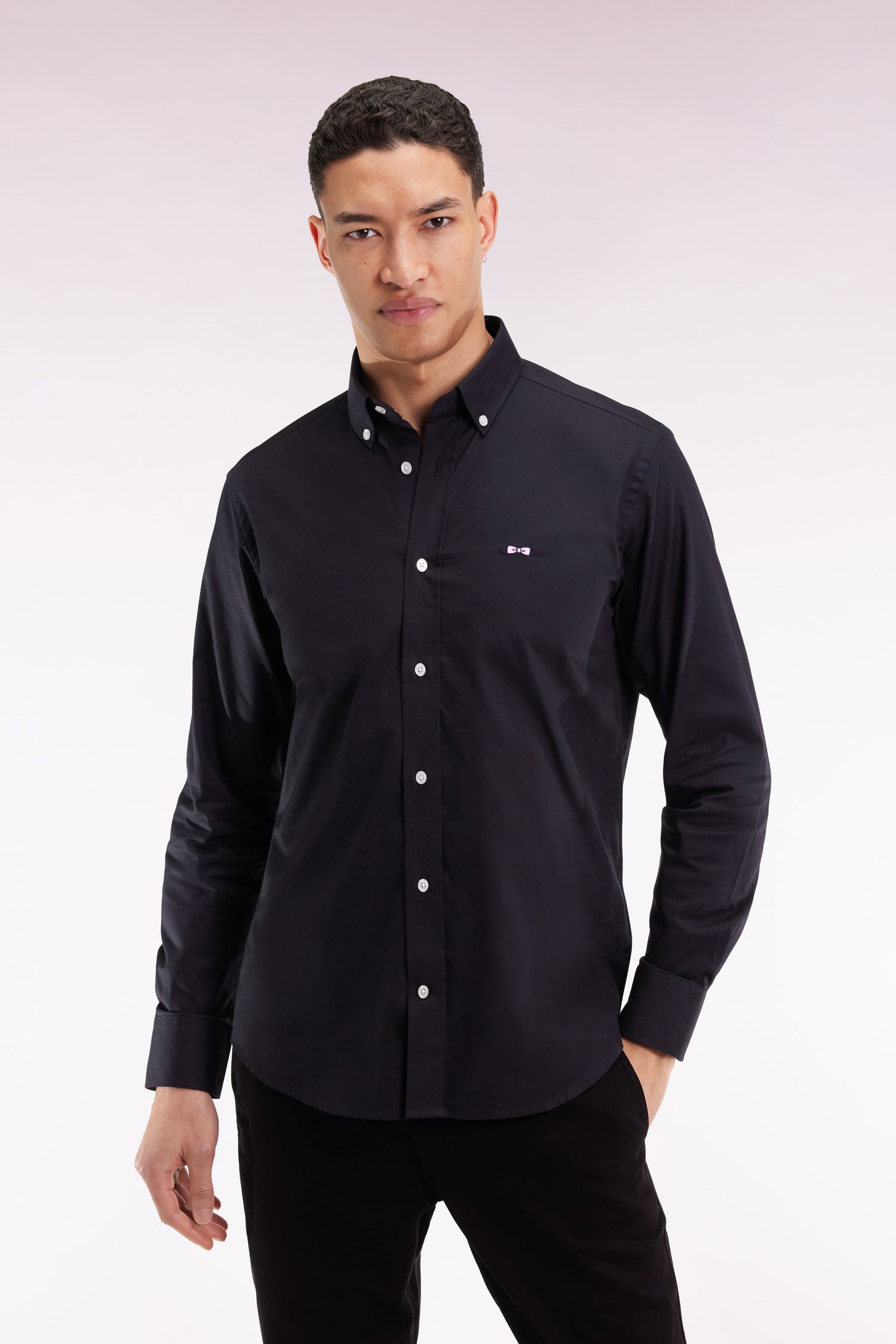 The sport-chic style that has become emblematic of Eden Park finds a new expression here in this straight-cut cotton shirt. Inspired by sportswear, it features elegant detailing with a button-down collar and contrasting pink-thread bowtie embroidery on the chest. On the back, two embroidered bows add an unexpected touch: one is discreetly embellished with a printed tie fabric, a refined nod to the Maison universe. Designed to combine urban allure with everyday comfort, this shirt is distinguished by its meticulous finishing and singular signature. It embodies both the understated elegance and assumed originality that are Eden Park's hallmark.