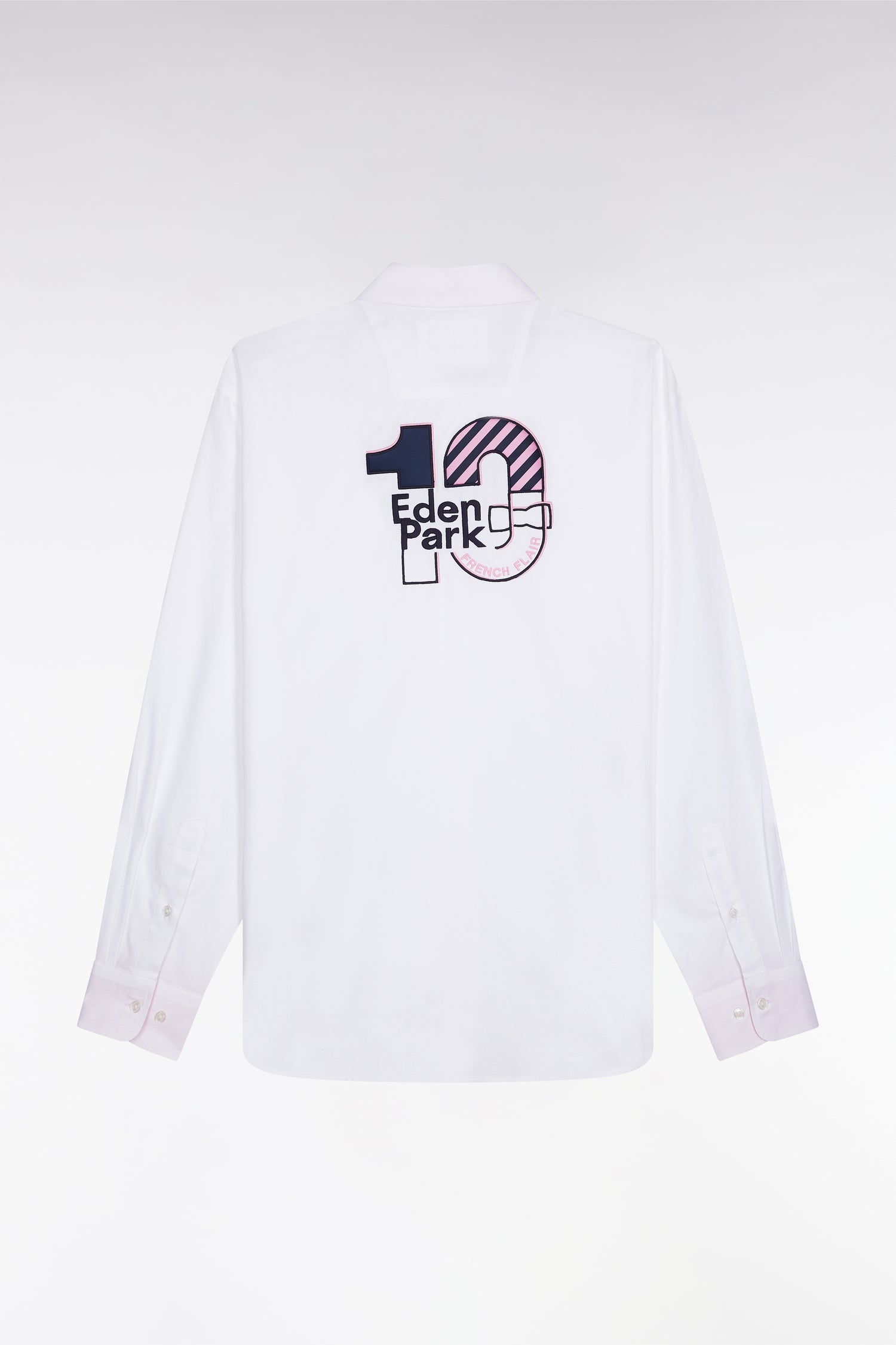 White cotton pinpoint shirt embroidery 10 back straight cut