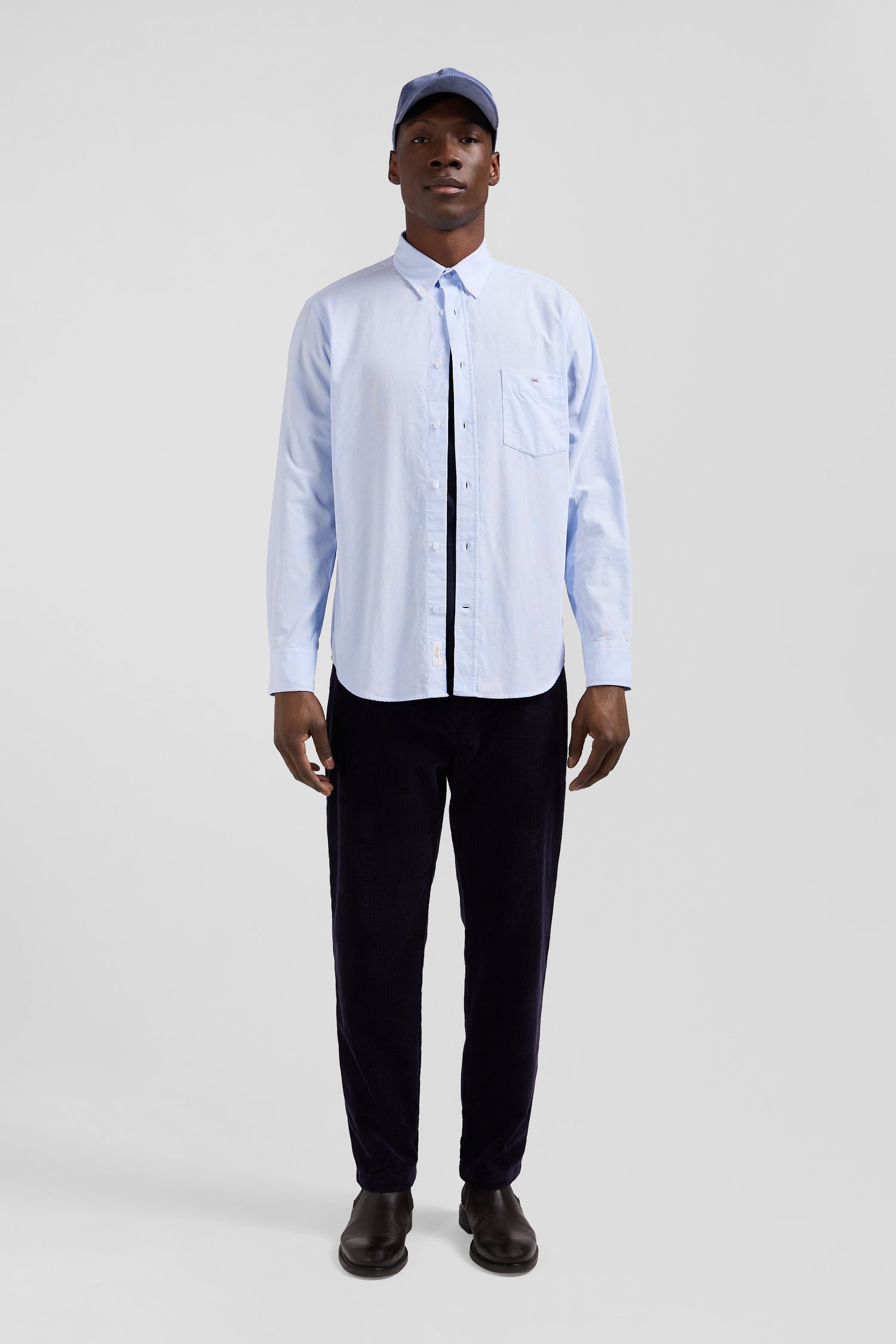 Light-colored corduroy shirt with button-down collar and regular-fit breast pocket