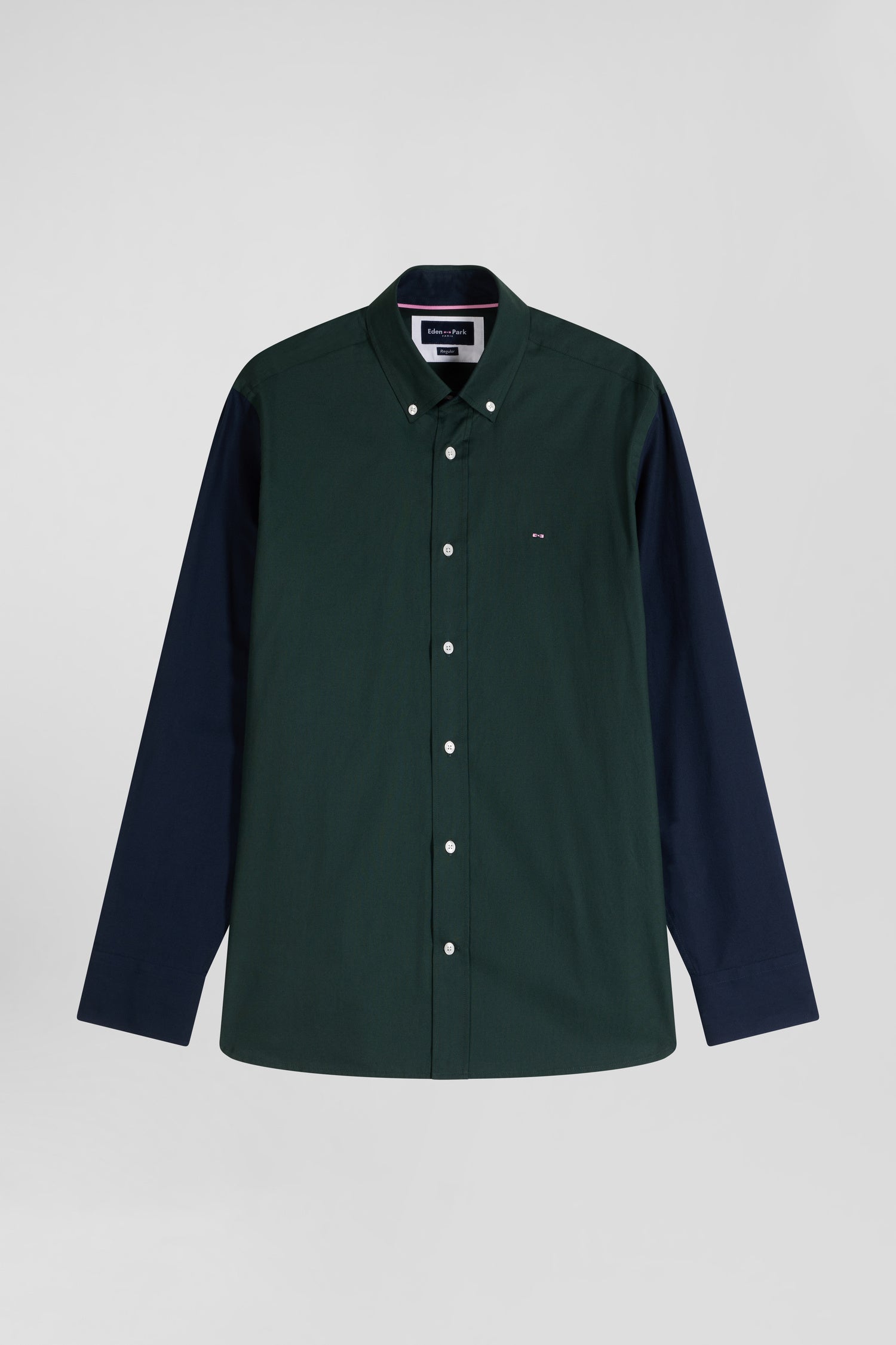 Adopt a unique style with this Oxford shirt, where the freshness of green blends perfectly with navy sleeves for a striking contrast. This timeless piece is magnified by a unique embroidery on the back, capturing the sporty essence of our Maison with elegance. Designed to combine comfort and style, this men's shirt features a button-down collar, ideal for sporty chic.
