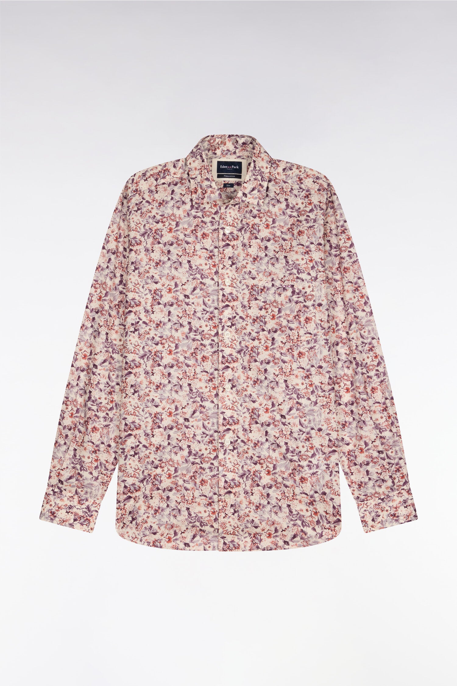 In a more fanciful register, this cotton poplin shirt, navy or white, focuses on the quality of its material and the precision of its slim cut. The floral print in blue or burgundy tones specially designed for this collection and its patch pocket bring a sporty-chic touch, faithful to the spirit of the House. A modern essential to structure everyday silhouettes, whether you combine this men's shirt with jeans, chinos or dressier pants for a summer ceremony.