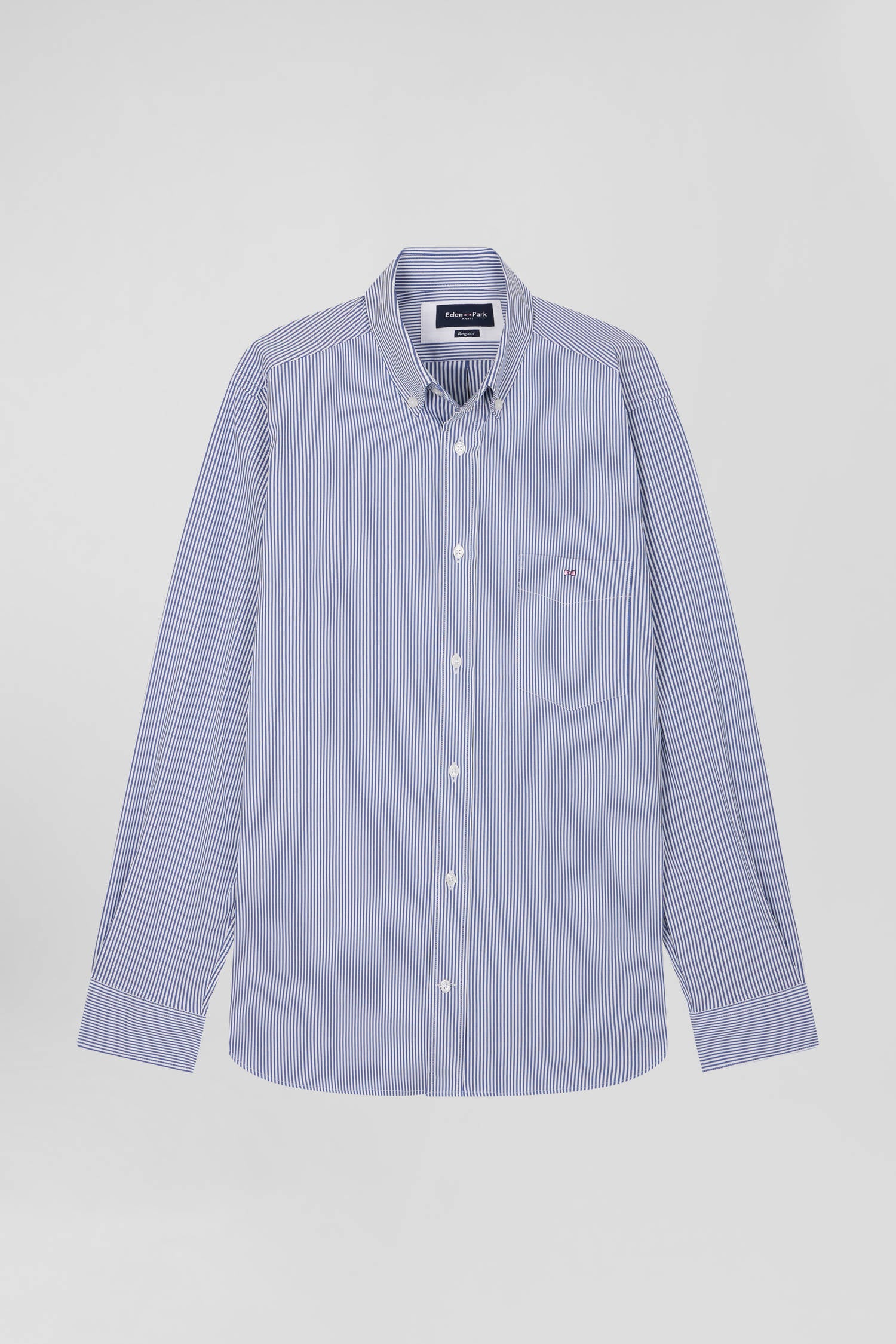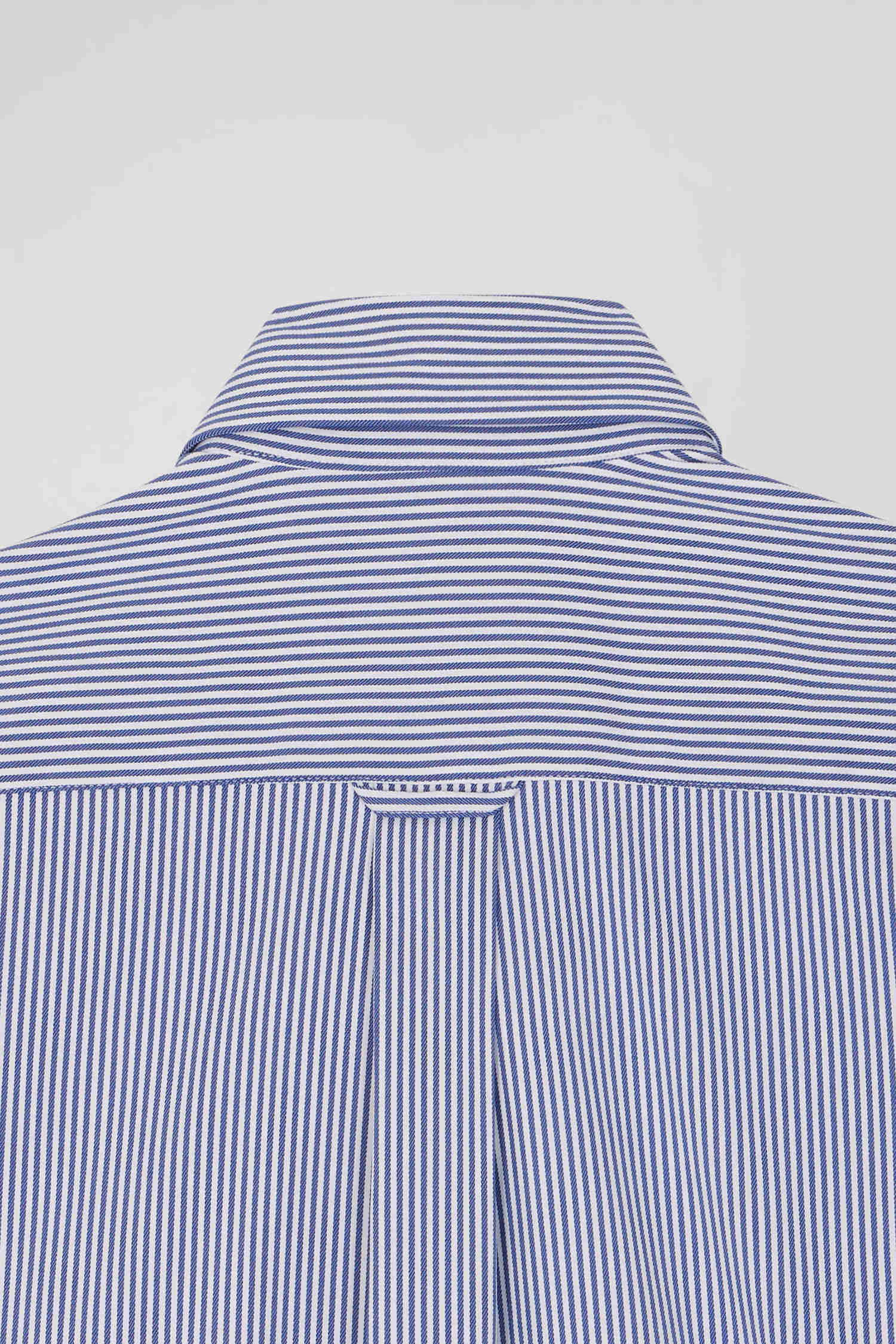 Regular navy blue cotton poplin shirt with baton stripes