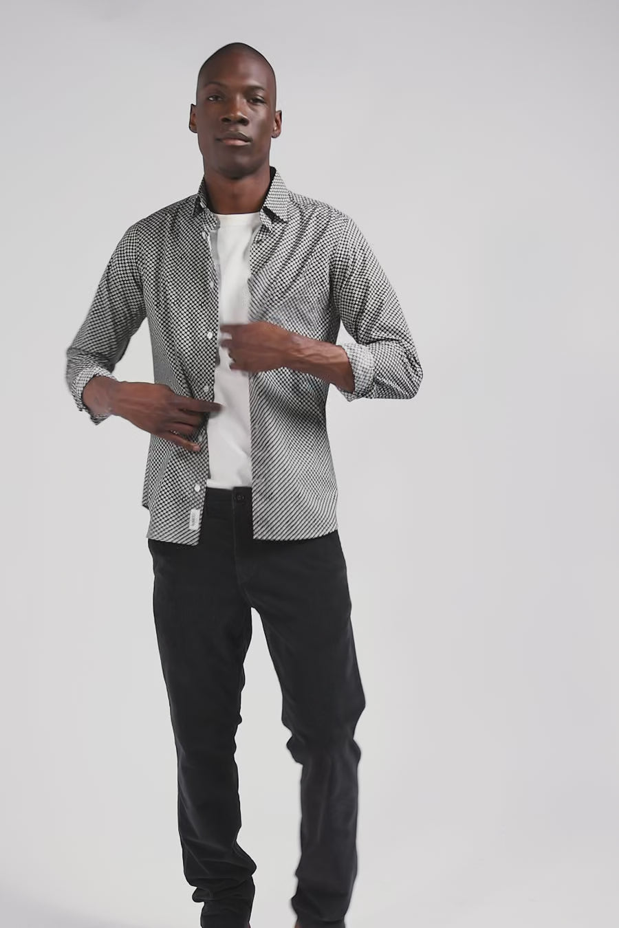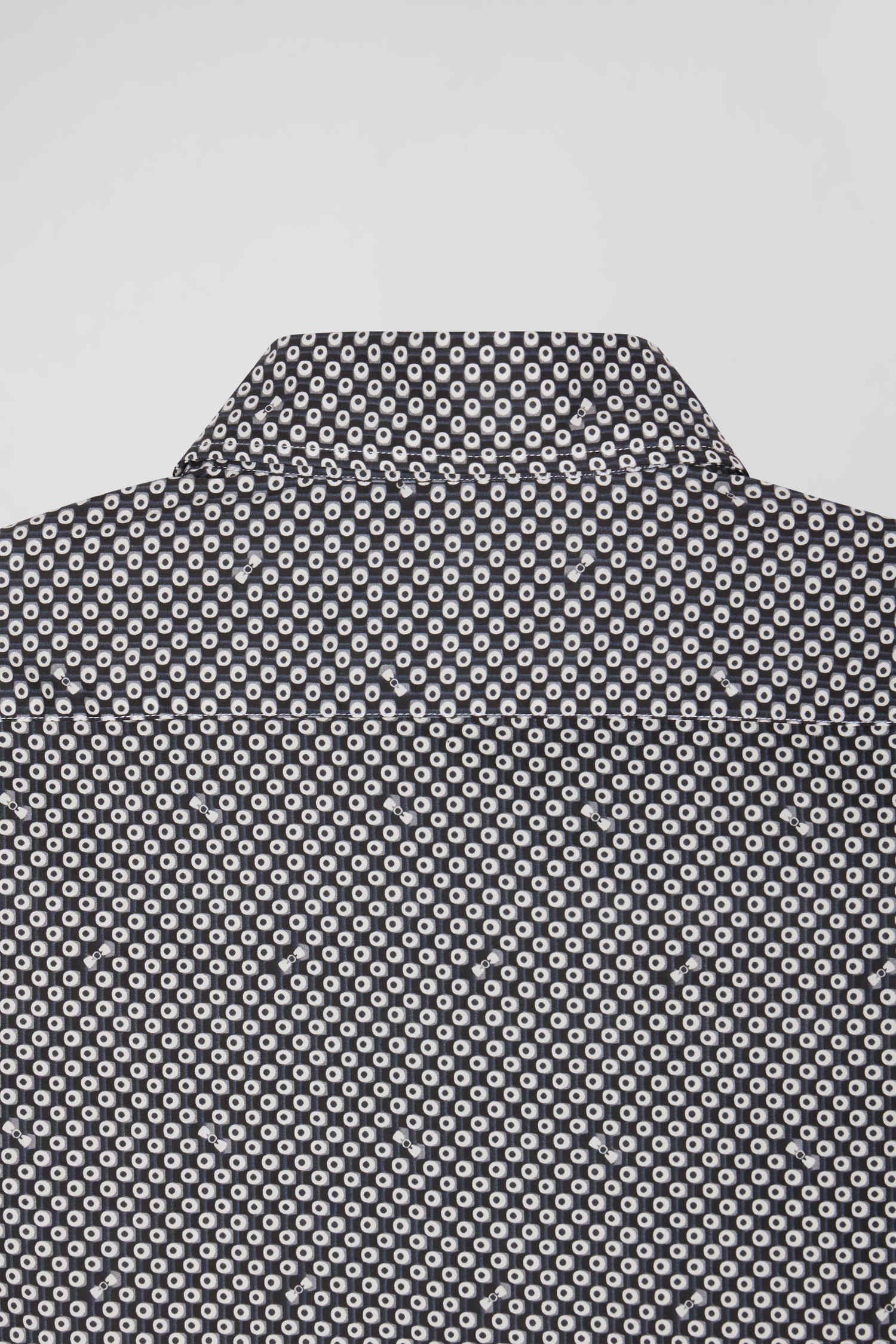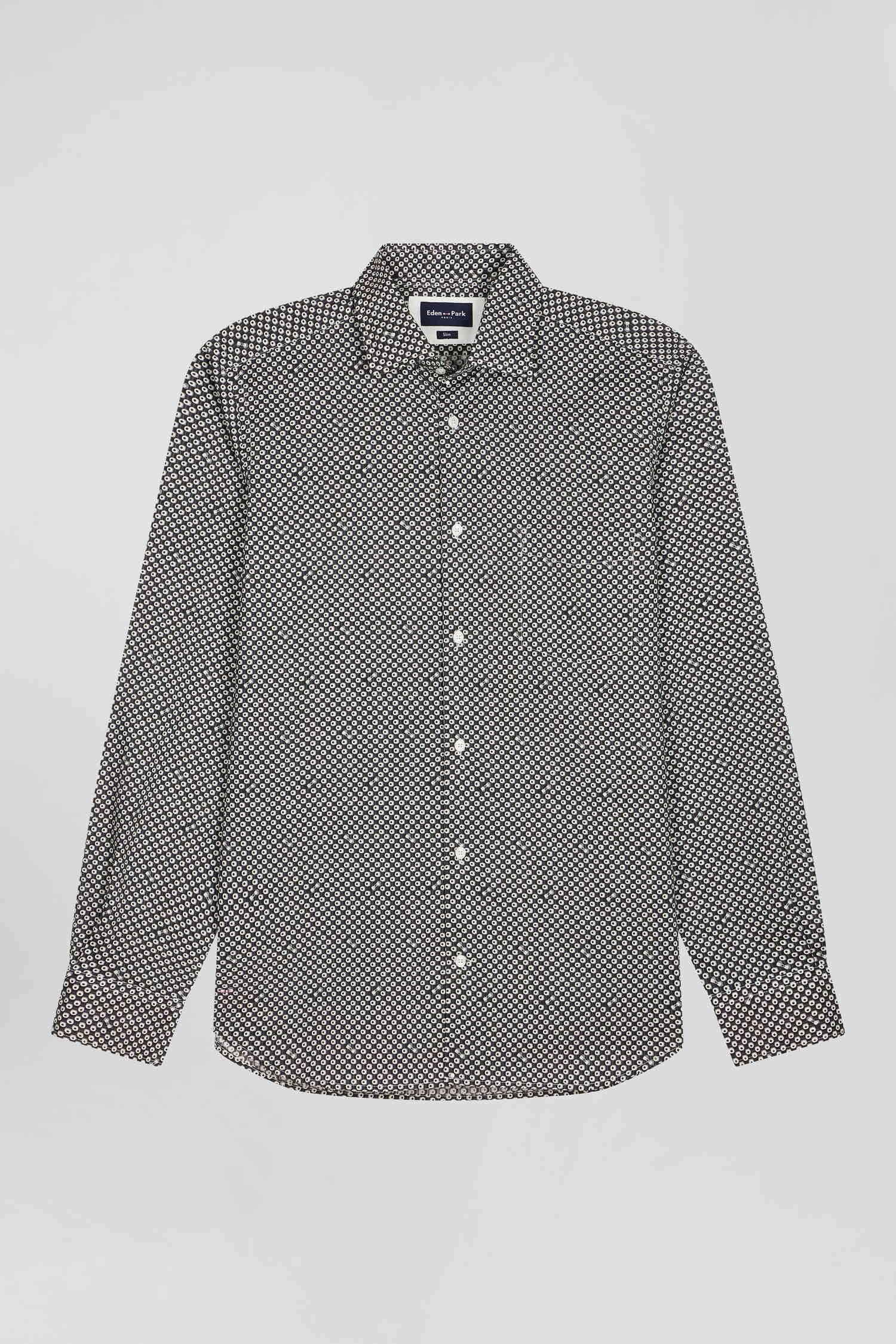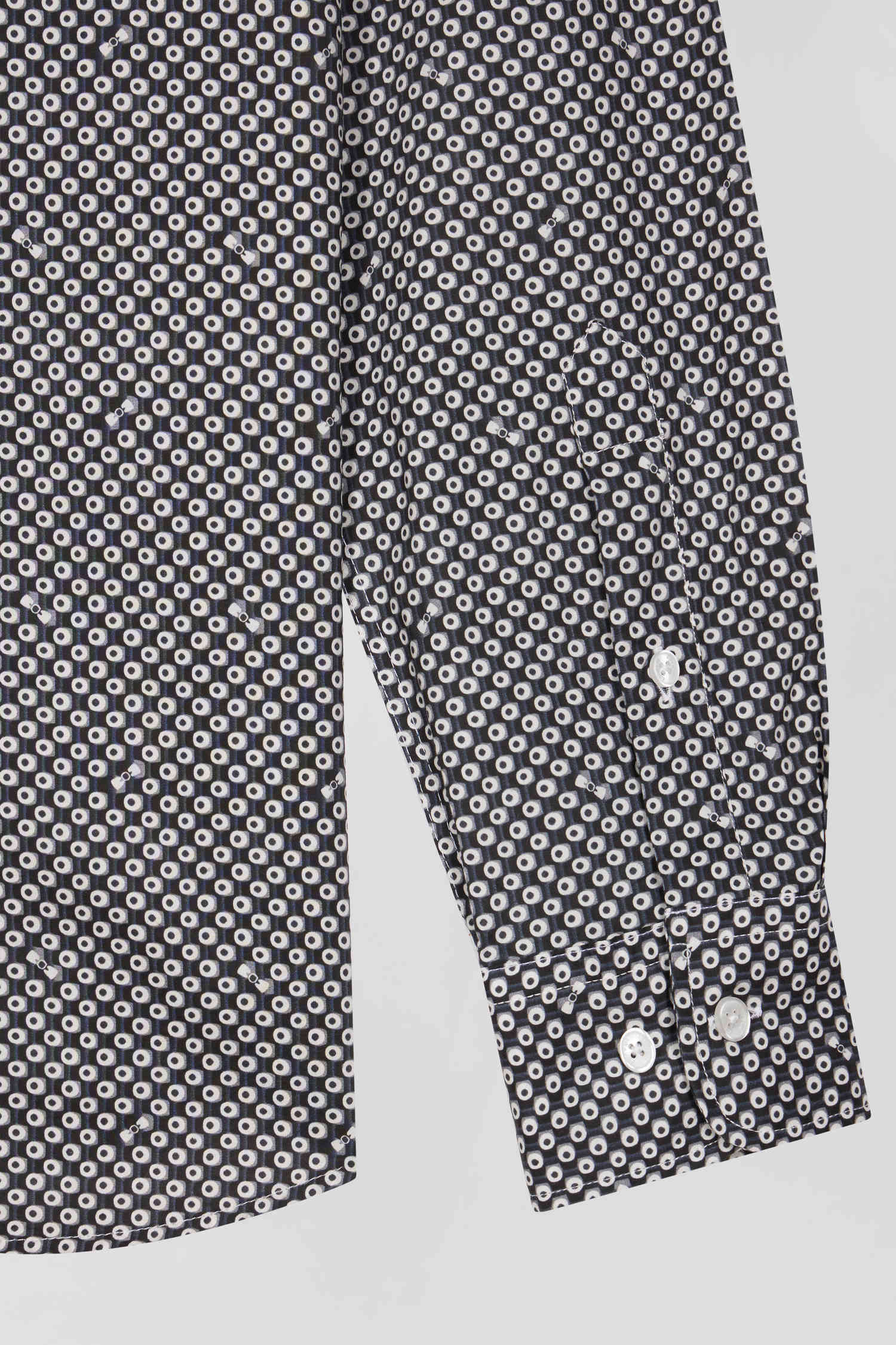 Refresh your dressy wardrobe with our gray cotton poplin shirt, perfect for any occasion. The soft fabric ensures maximum comfort, while the modern graphic print, combined with a button-down collar and precise slim fit, offers a sophisticated yet contemporary look. This men's shirt is an ideal, on-trend choice for those seeking style and functionality.