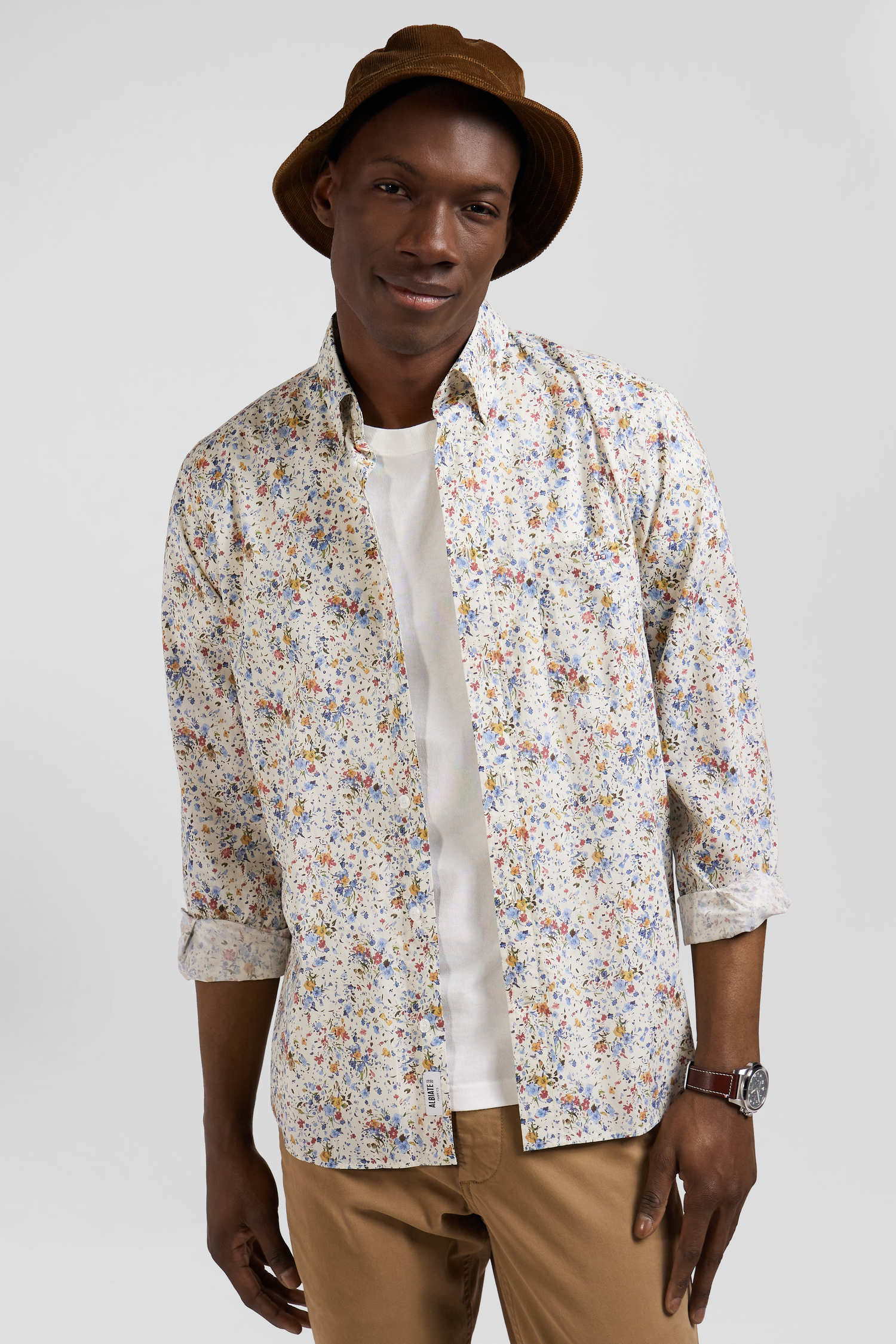 This elegant shirt in cotton poplin is enhanced by an exclusive microprint, blending delicate flowers with our signature bow tie. Perfect for a variety of occasions, it combines comfort and refinement thanks to its soft, breathable poplin. Featuring a regular straight fit, this men's shirt is fitted with signature oval buttons, a button-down collar and a chest pocket adorned with bow-tie embroidery.