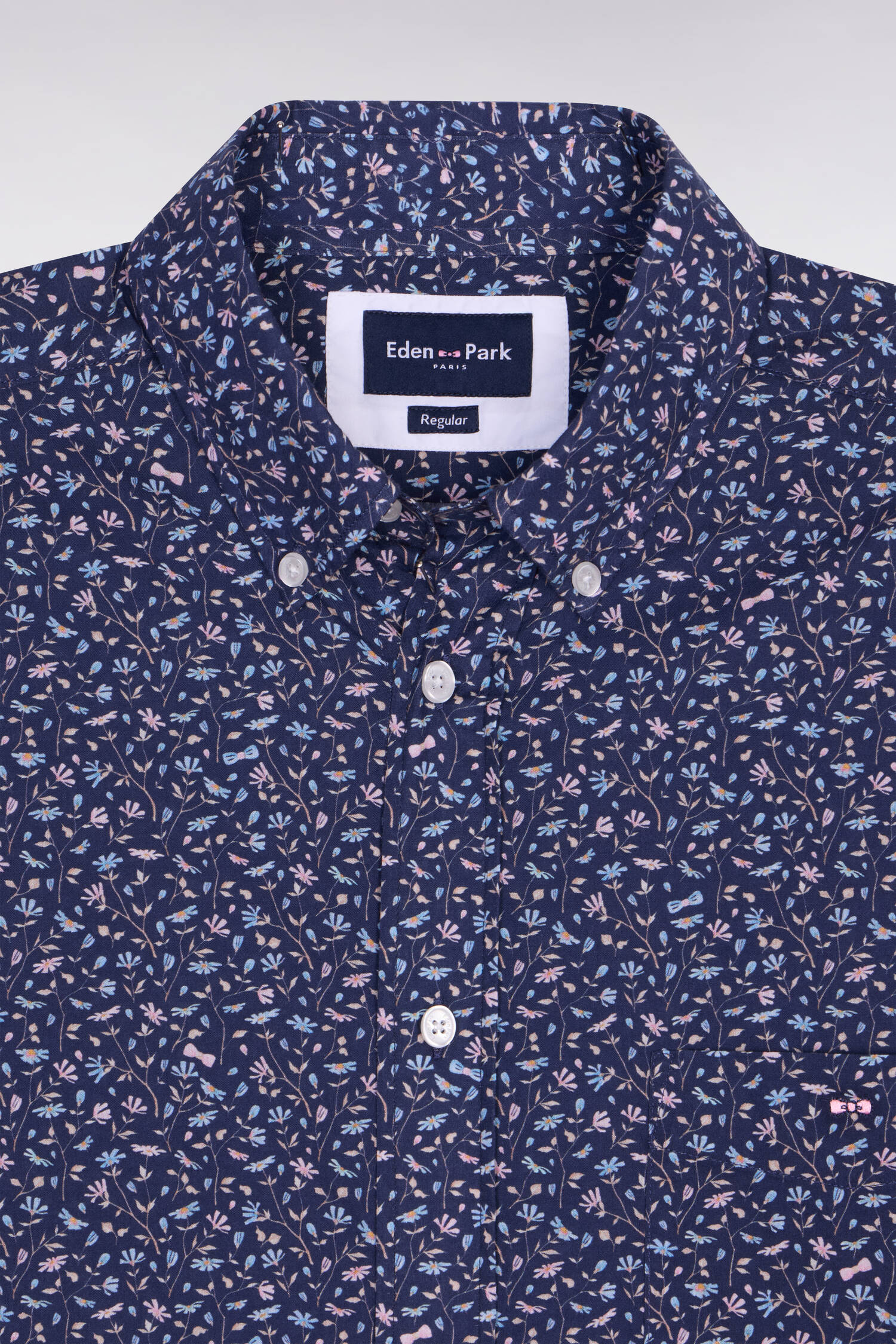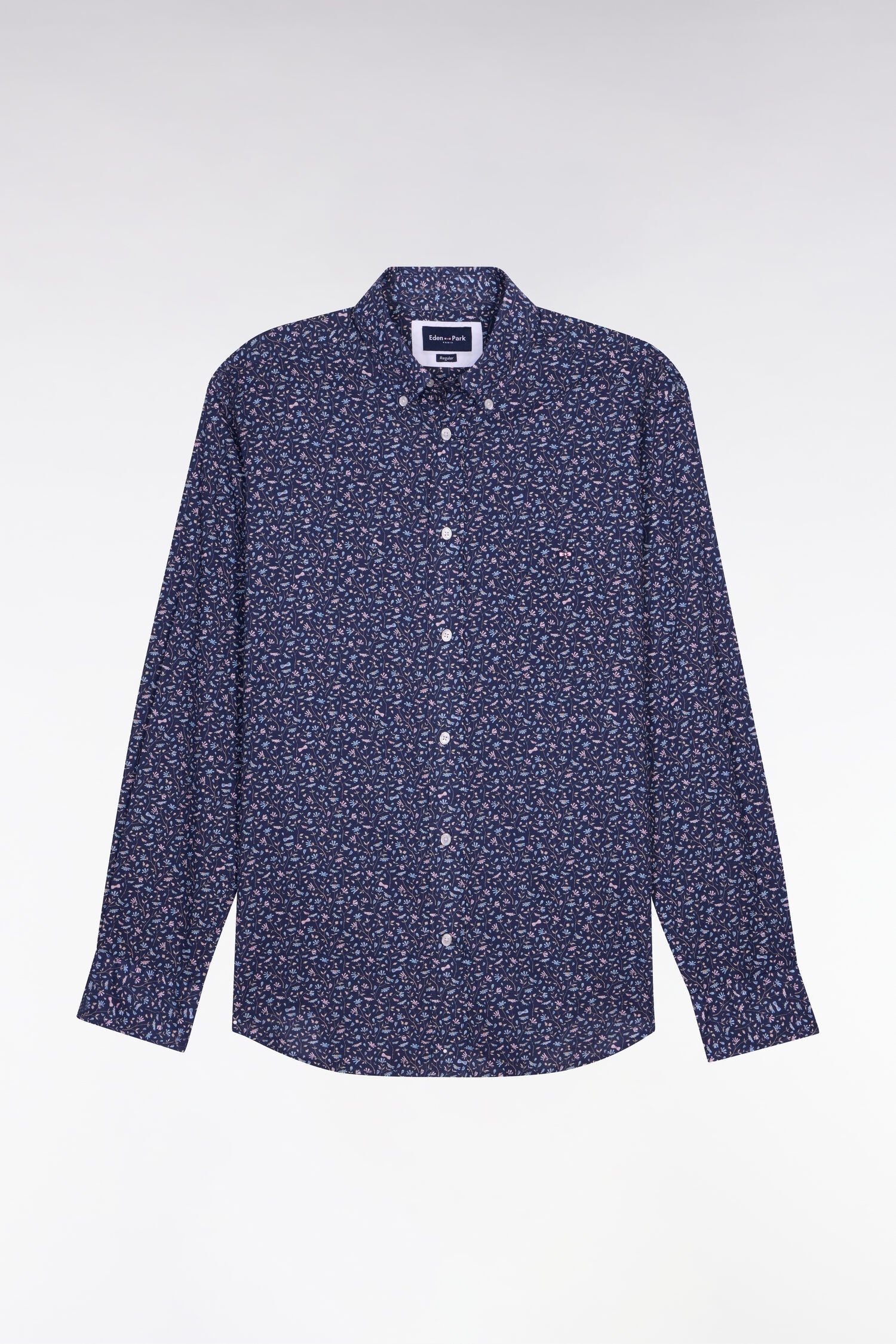 Chemise en popeline de coton marine à microimprimé floral coupe regular