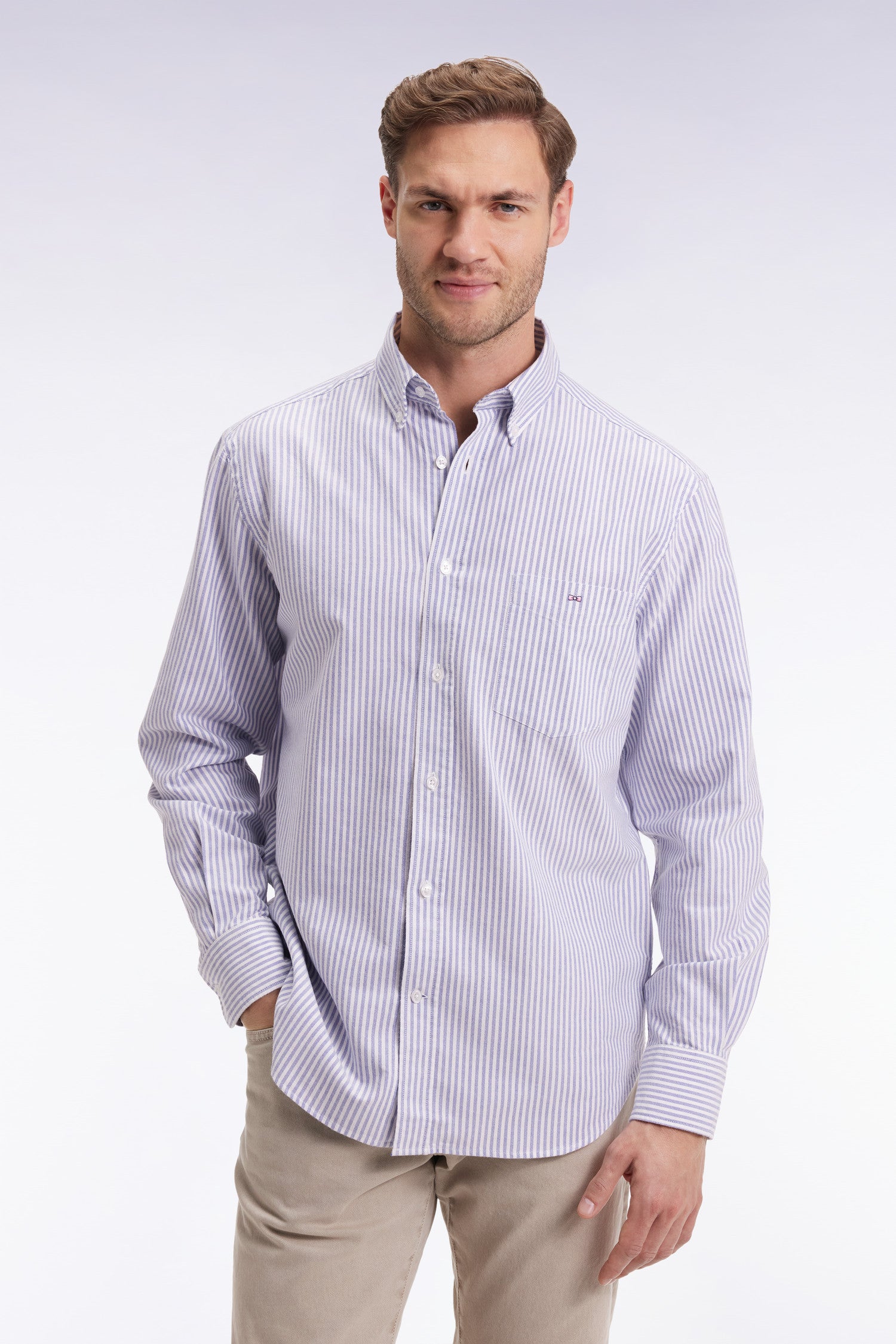 A soberly contrasting stick stripe, a button-down collar and iconic finishes: this striped shirt revisits Eden Park classics with precision. Easy to combine, it goes equally well