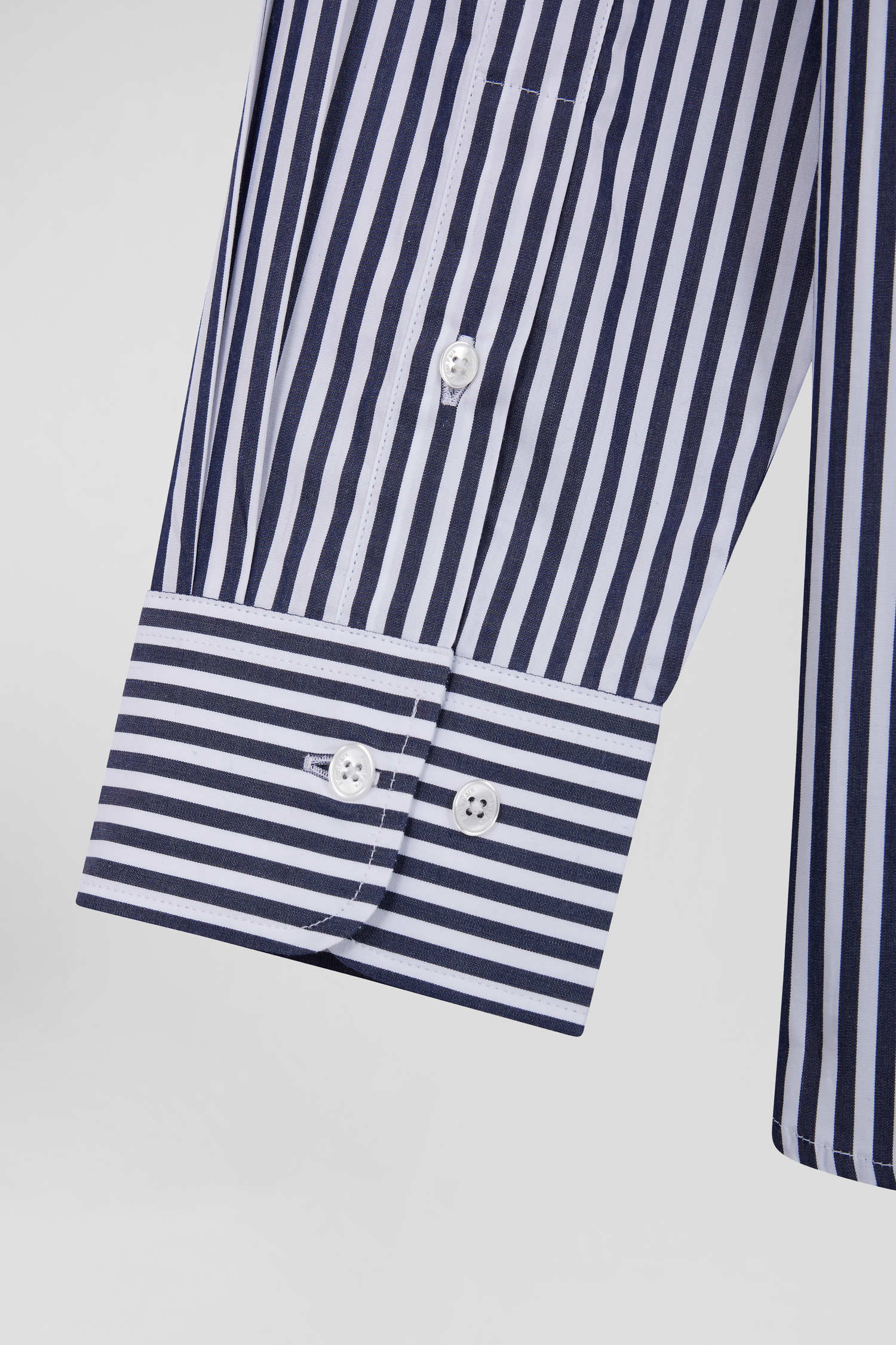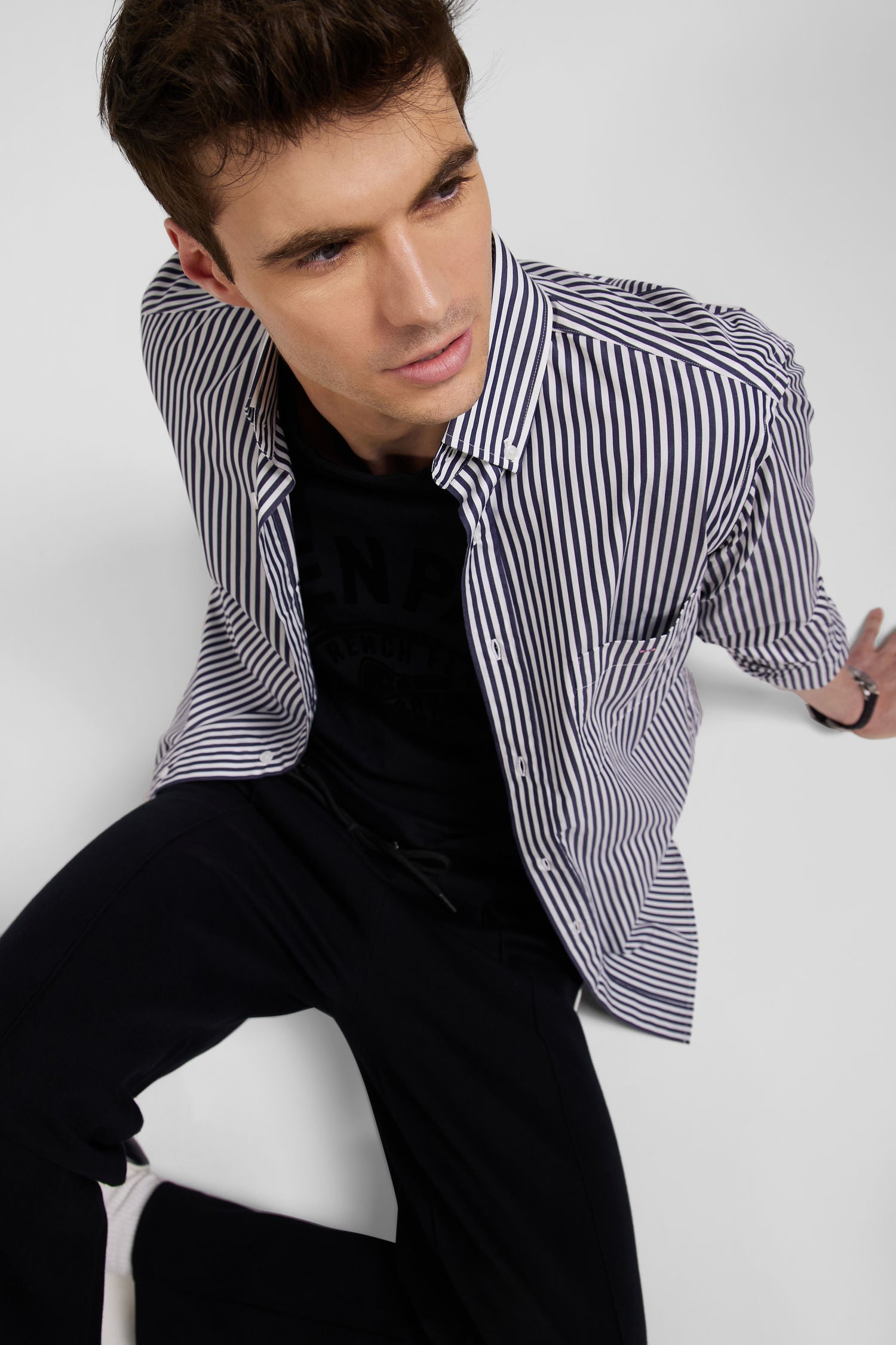 A mainstay of the men's wardrobe, the striped cotton poplin shirt is a must-have. In addition to the timeless blue and navy colors, this season our House offers a colorful interpretation, always finished with Eden Park's meticulous attention to detail.