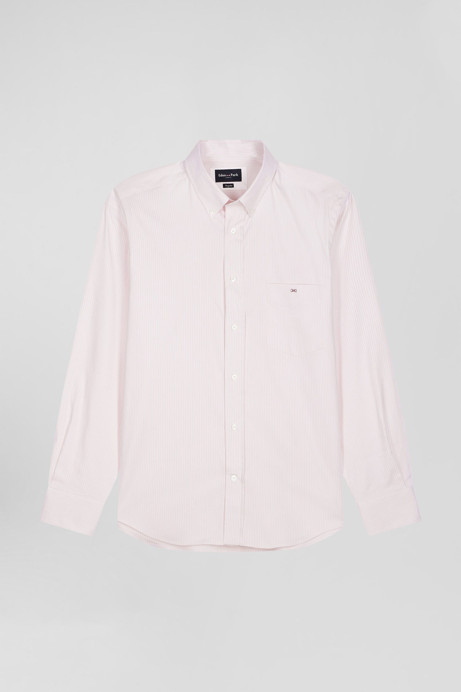 This comfortable, elegant cotton poplin shirt features graphic stick stripes for a preppy look and slimmer silhouette. This men's shirt features a casual patch pocket, a back pleat and a button-down collar for a perfect fit, the latter detail also enhancing the masculine head carriage. A guarantee of quality and durability, this men's shirt is available in a range of timeless colors, and is made from luxurious Italian poplin.