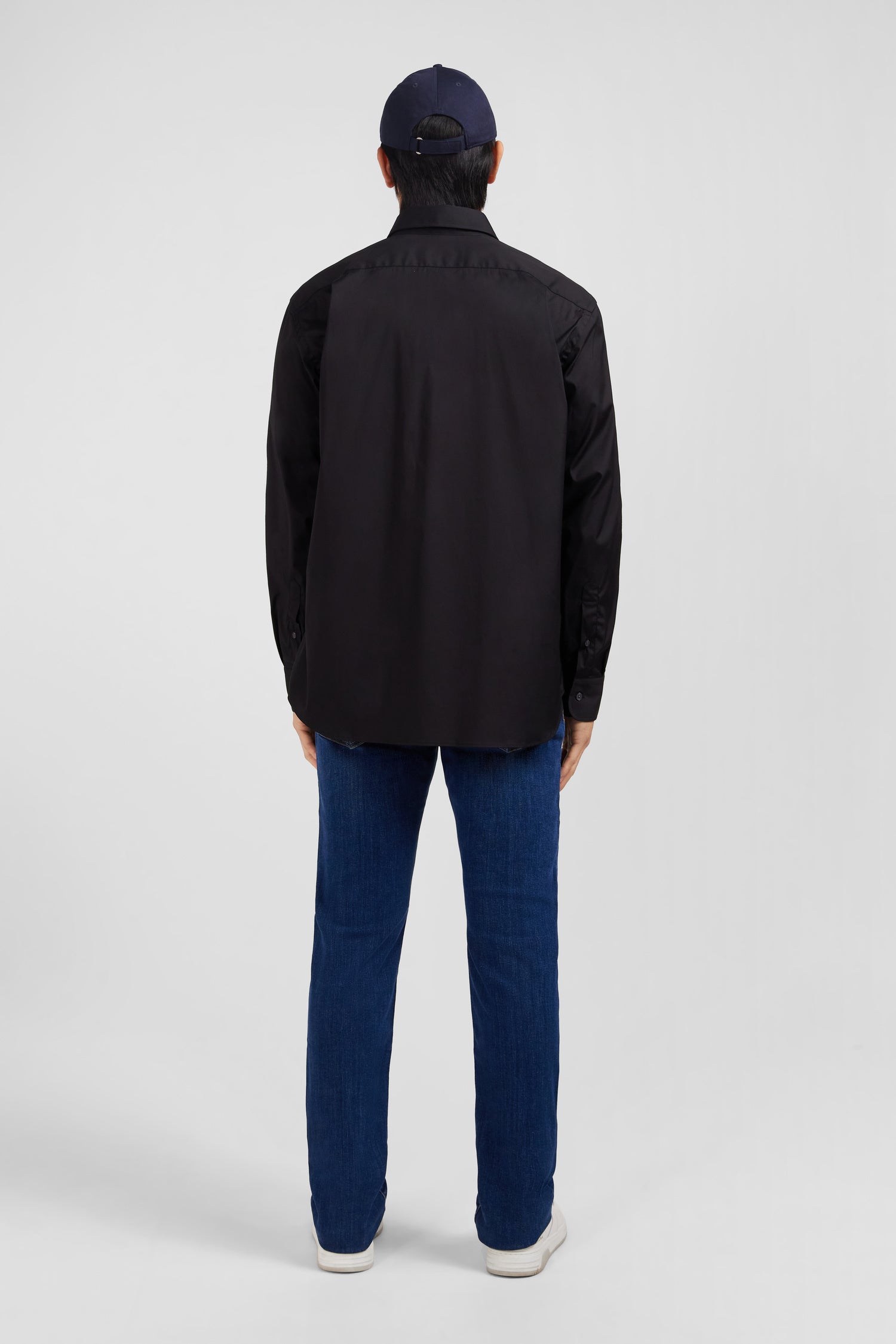 This plain coloured shirt is subtly accented with an embroidered bow tie on the bottom right. It is made of stretch cotton for more comfort
