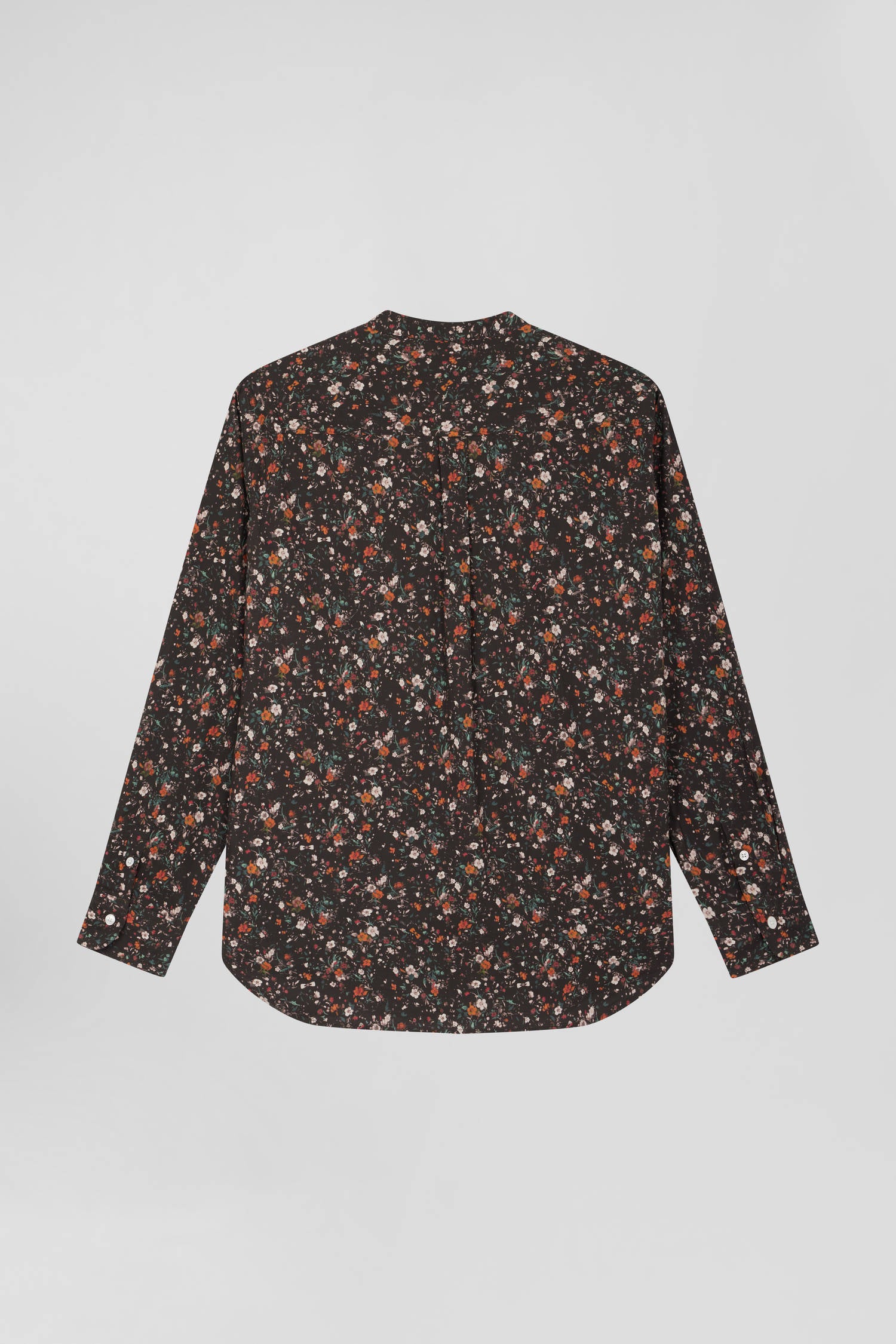 This feminine, poetic shirt is made from a light, soft cotton poplin. Its floral micro-pattern, designed exclusively for our Maison, adds a romantic, modern touch with its play of contrasts. Its straight cut and lack of collar enhance the head and silhouette. For a feminine autumn-winter outfit, why not match this shirt with our beige corduroy suit?